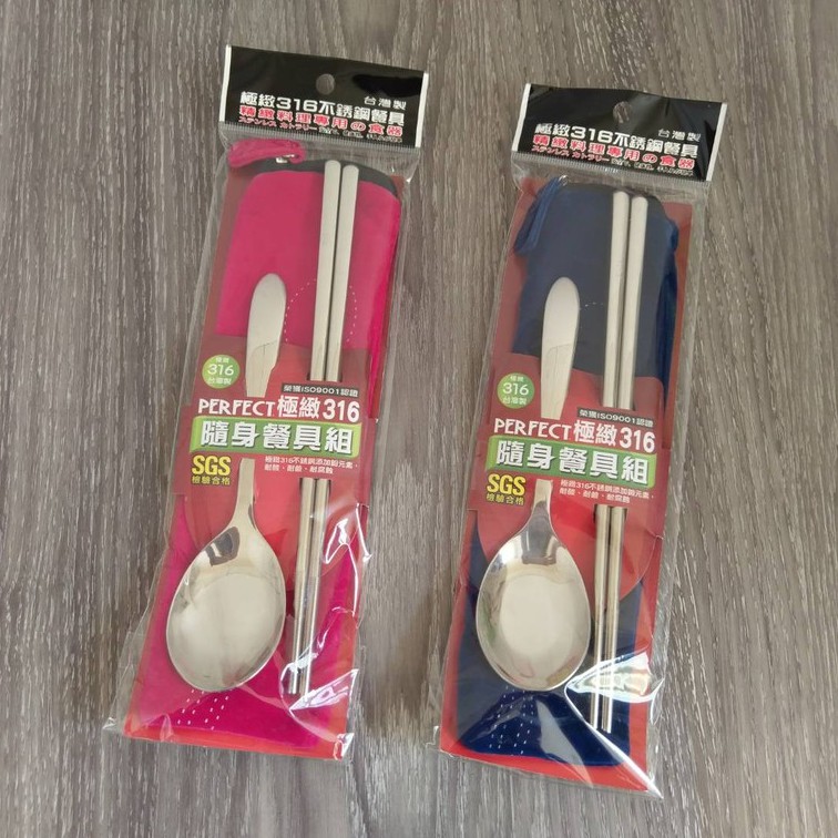 樂家-PERFECT 極緻316不鏽鋼隨身餐具組三件式筷子/湯匙/袋子