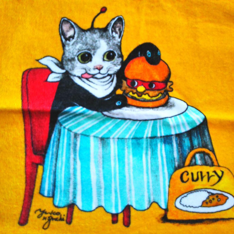 樋口裕子聯名Mos Burger手巾 黃色 可愛 貓咪 漢堡