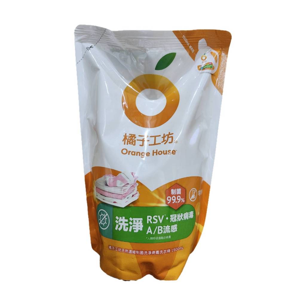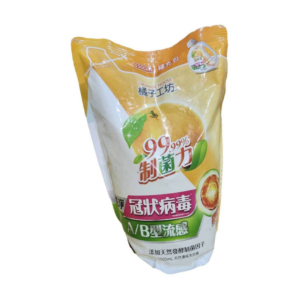 橘子工坊 天然濃縮洗衣精補充包 1500mL 制菌力、雙效潔淨、制菌低敏、制菌洗淨病毒、制菌去味
