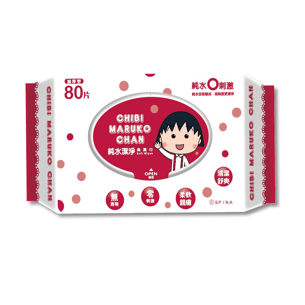 櫻桃小丸子 純水(加蓋)潔淨柔濕紙巾 80抽 單包入