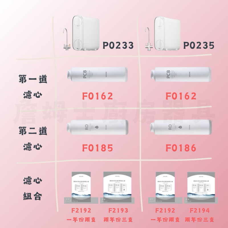 櫻花牌|F2192|適用機型P0233、P0235|雙效RO淨水器專用濾心組合一年份(2支入) 🔹保證原廠貨