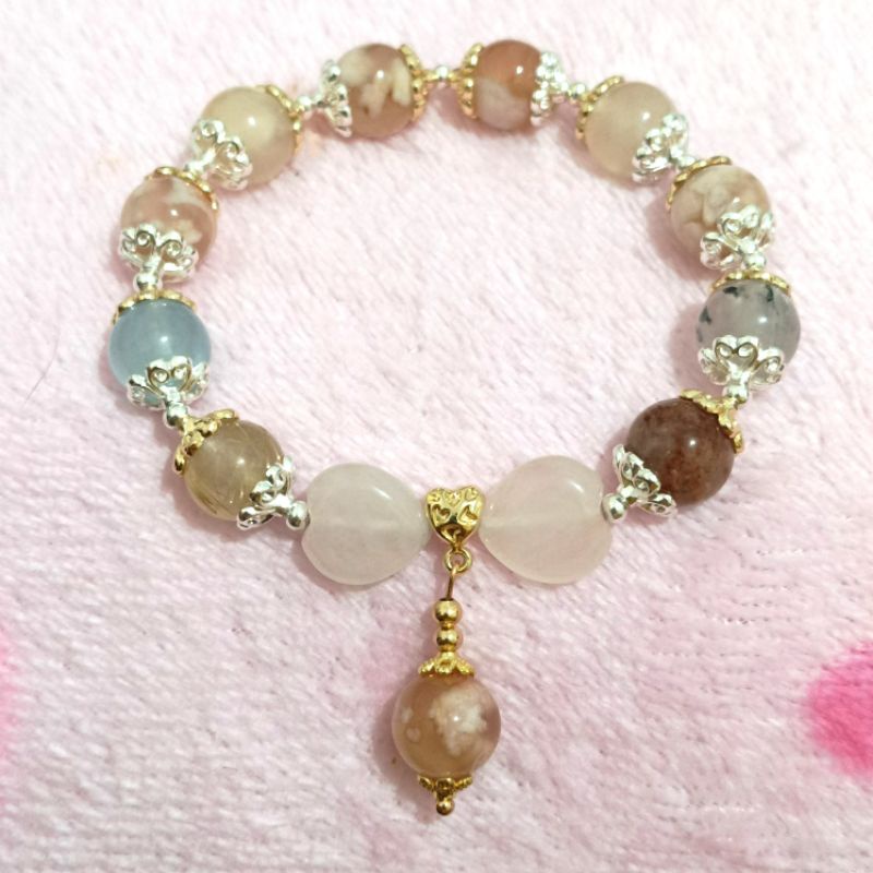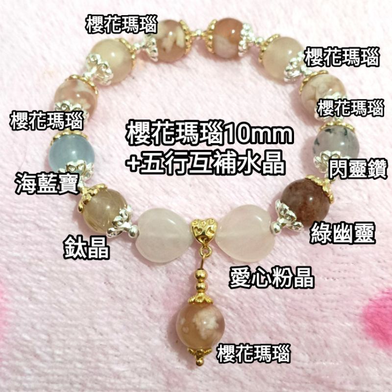 櫻花瑪瑙+五行互補。招財,招貴人!排除負能量,增強氣血循環,助眠。旺財,桃花,姻緣,健康,凍齡!