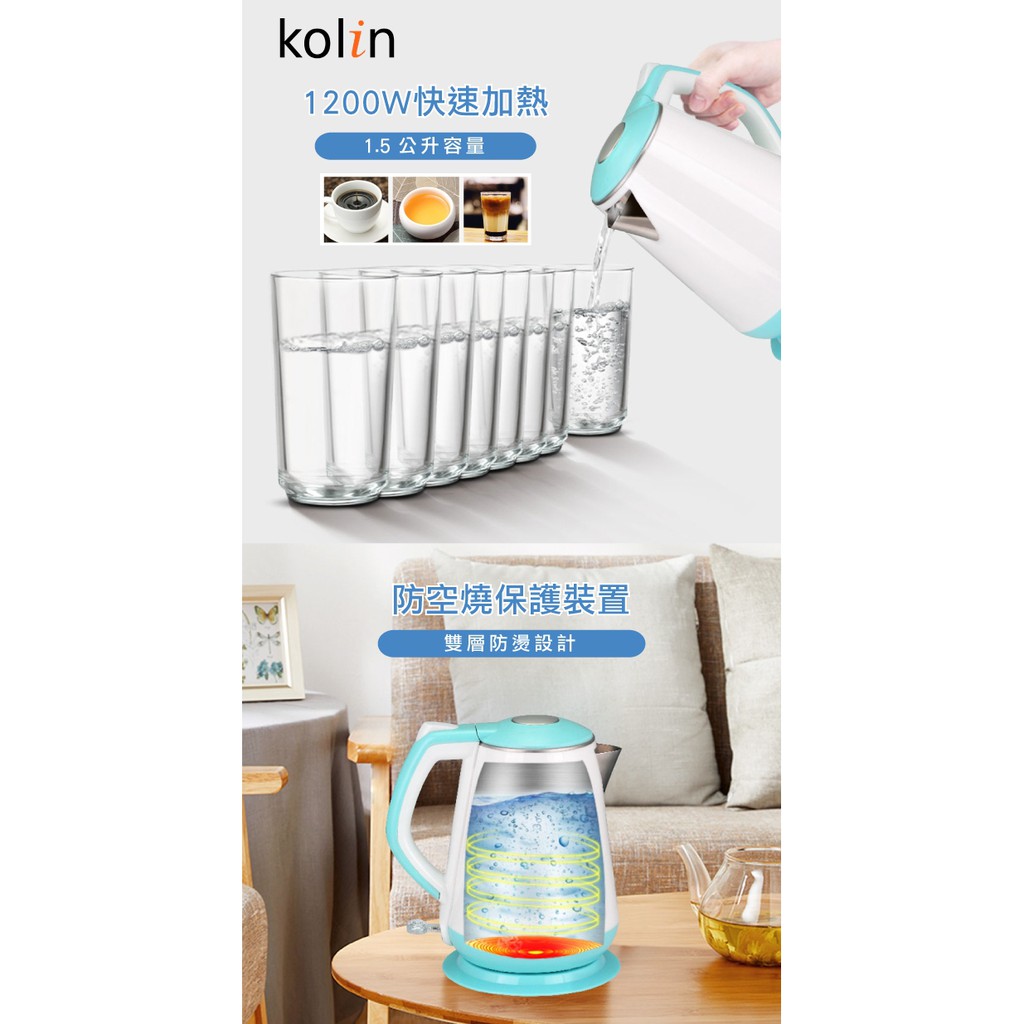 歌林Kolin 1.5L 雙層防燙不鏽鋼快煮壺 KPK-UD1519