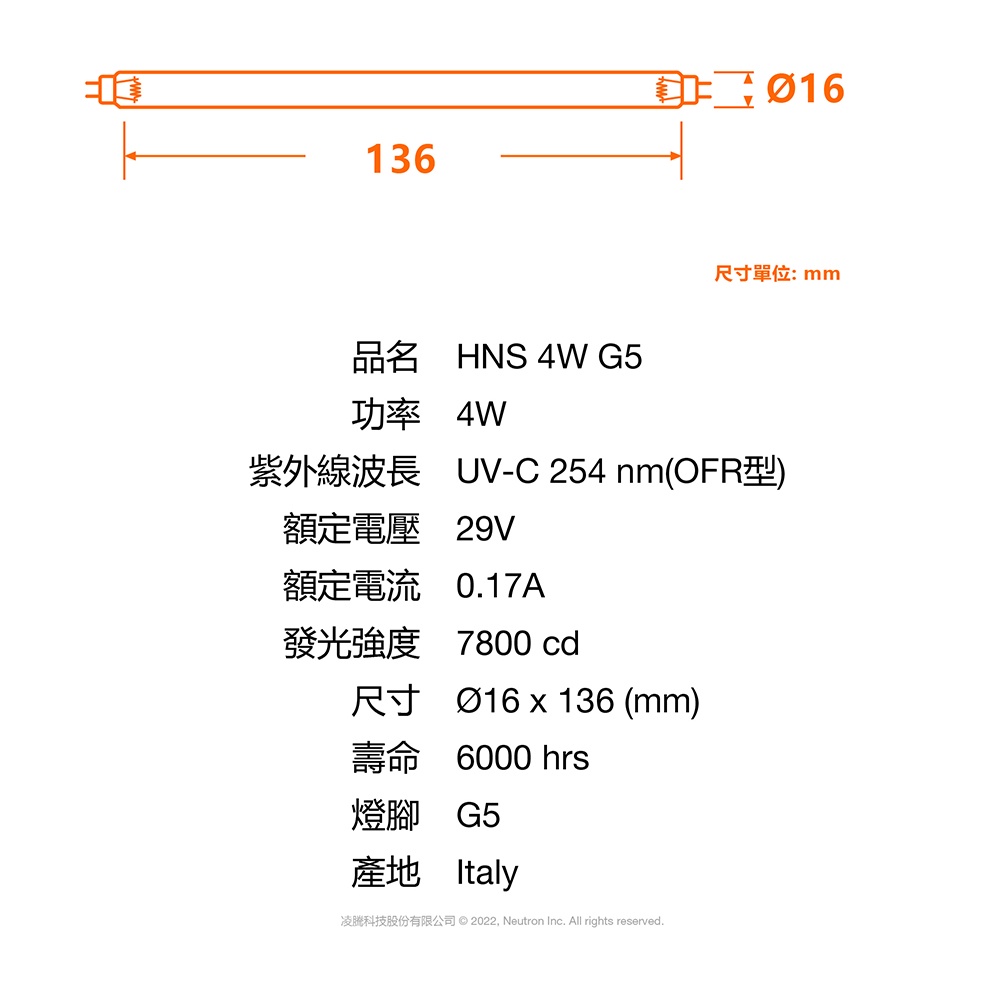歐司朗 OSRAM PURITEC HNS UV-C 4W T5 殺菌燈管 官方直營店