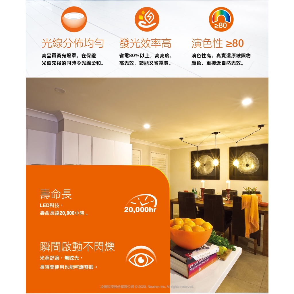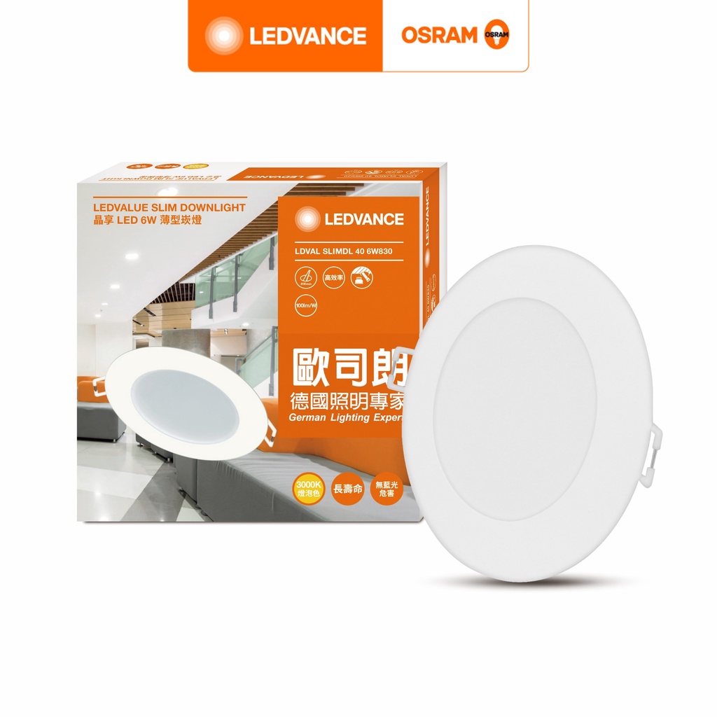 歐司朗/朗德萬斯 晶享LED 9.5CM 6W 薄型 崁燈 3入 /歐司朗 6吋 筒燈吸頂框架3入 官方直營店