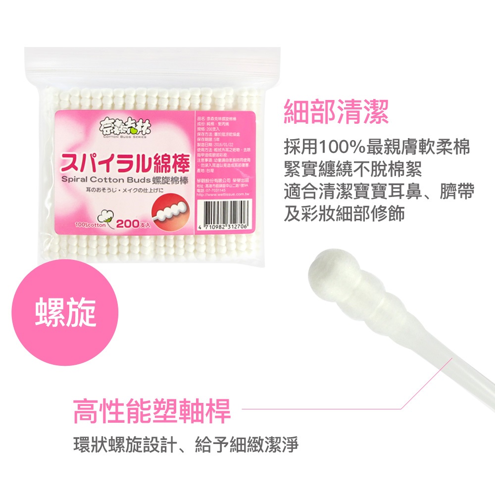 歐德萊 【200支】奈森克林棉花棒 一次性棉花棒 螺旋棉花棒 粗軸棉花棒 卸妝棉棒 棉棒 掏耳棒 棉花棒 台灣製