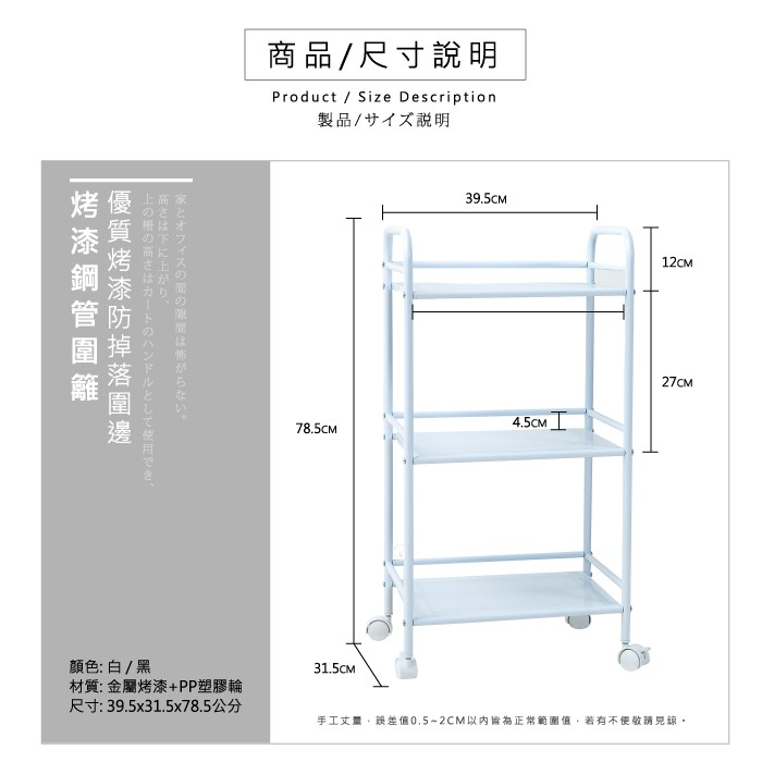 歐德萊 MIT簡約日系三層推車【CA-04】收納推車 置物推車 美容車 收納櫃 廚房置物架 廚房收納架 推車 置物櫃