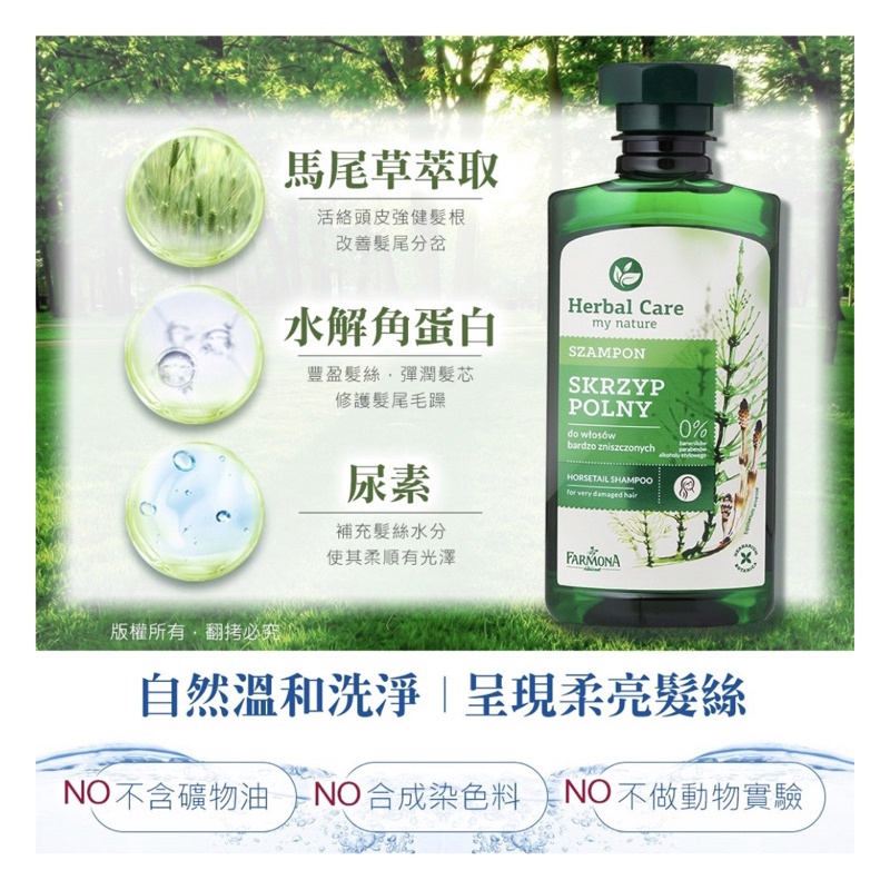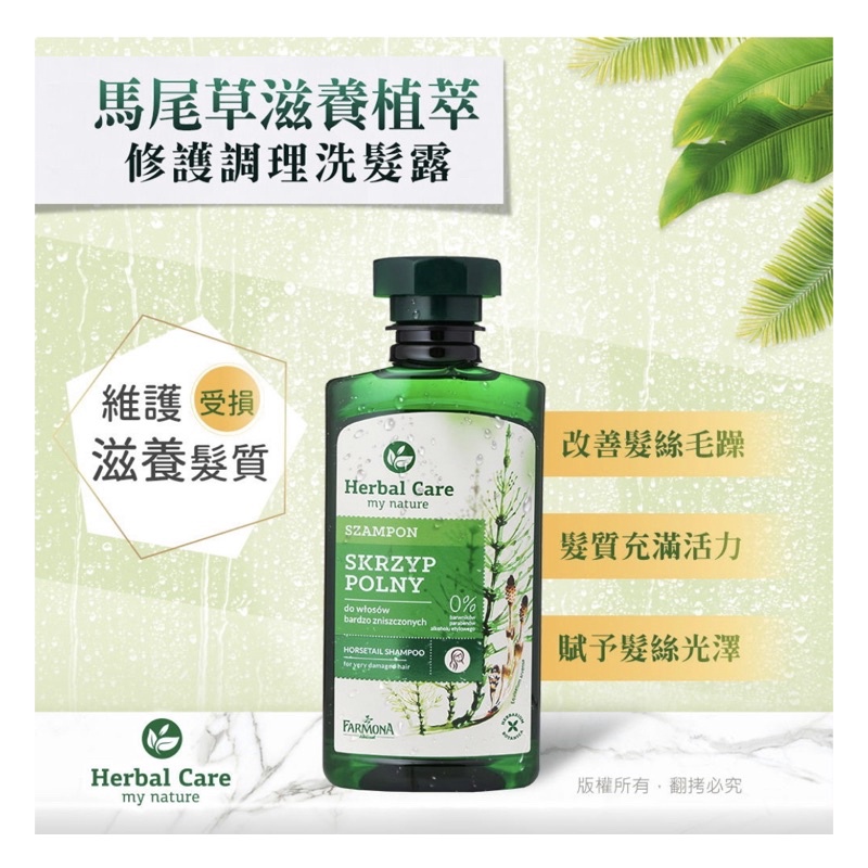 歐洲波蘭Herbal Care草本植萃 馬尾草滋養植萃修護調理洗髮露330ml
