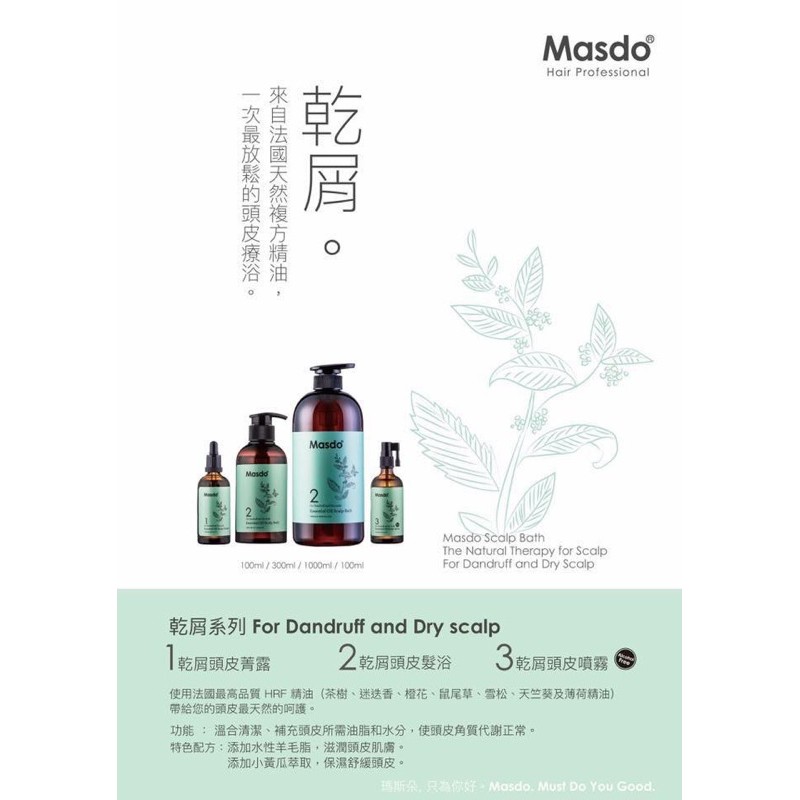 歐盟認證 MASDO瑪斯朵 乾屑HRF複方精油頭皮髮浴.頭皮屑洗髮精需沖水 大1000ml ( 美髮公司正貨產品附編碼)