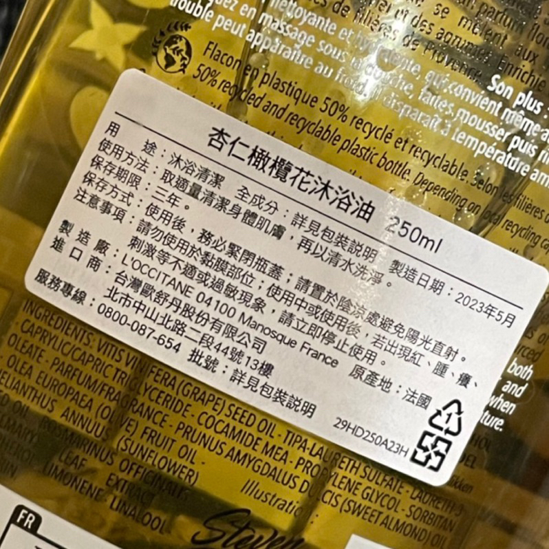 歐舒丹 杏仁橄欖花沐浴油250ml 專櫃公司貨