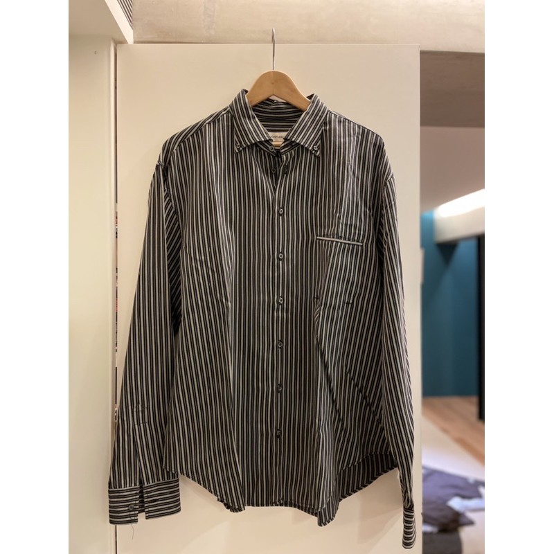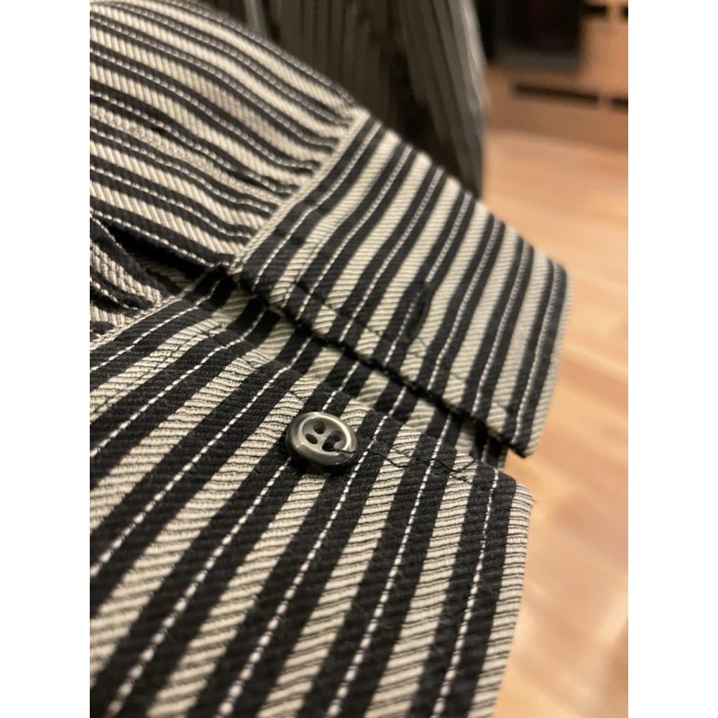 正版歐美高級名牌 Emporio Armani 義大利製黑灰色條紋襯衫