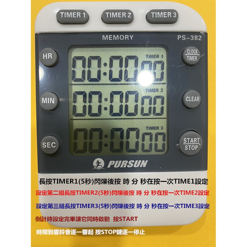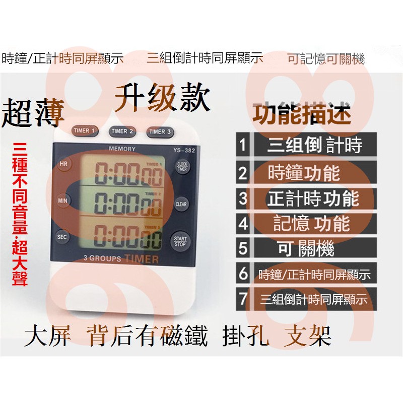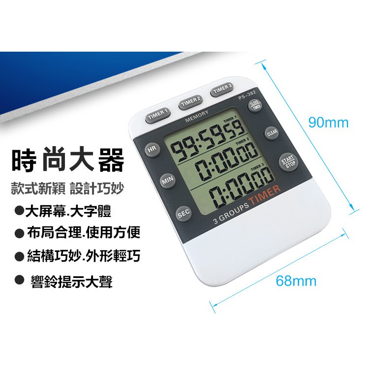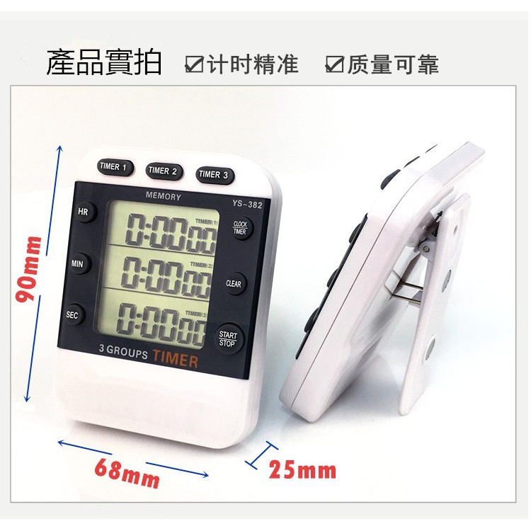 正貨正品382三通道電子正多組倒計時器定時提醒器時鐘秒錶記憶功能三排顯示/三通道倒計時器/具時鐘秒錶三組倒計時記憶