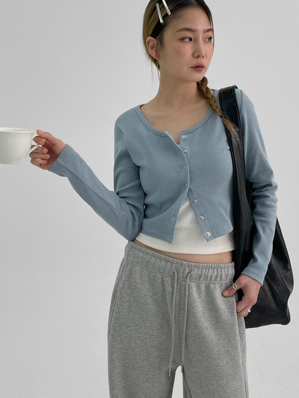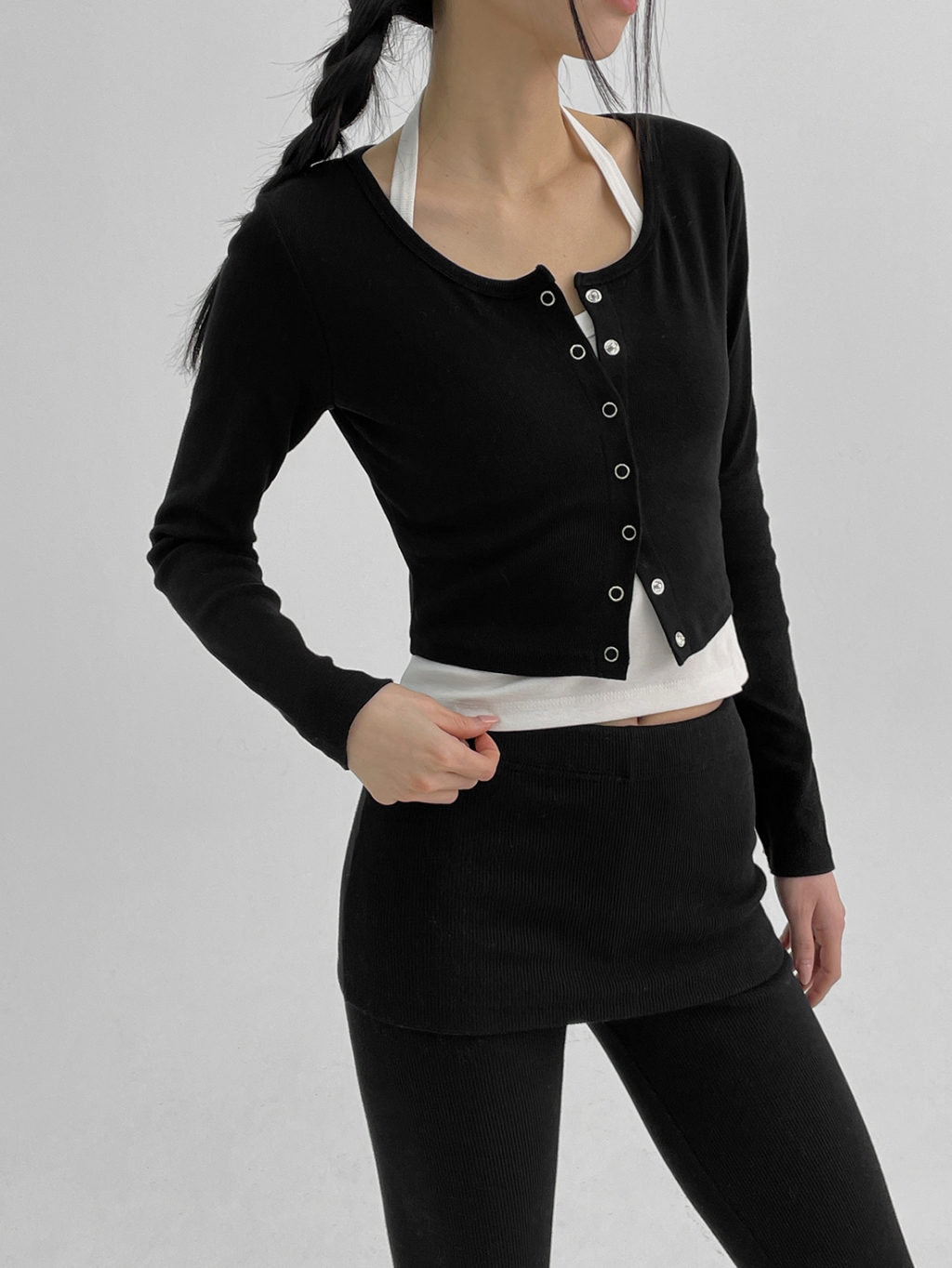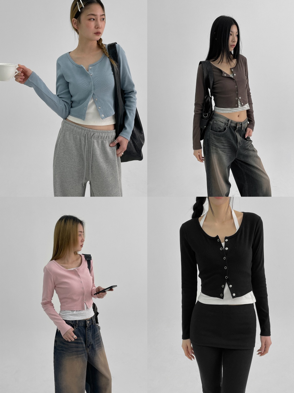 正韓製圓領排釦外套 cardigan 6色 ( black-up 自製設計款 ) 長袖 短版 長袖 上衣 罩衫