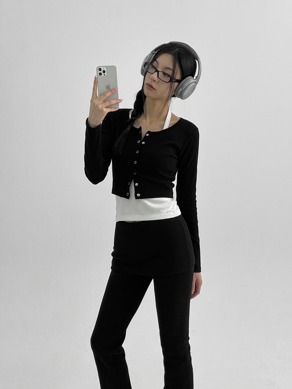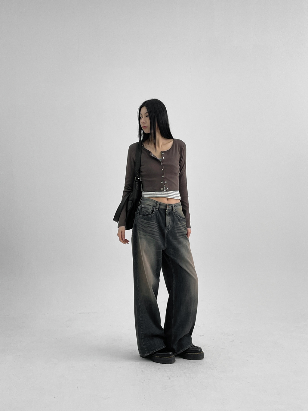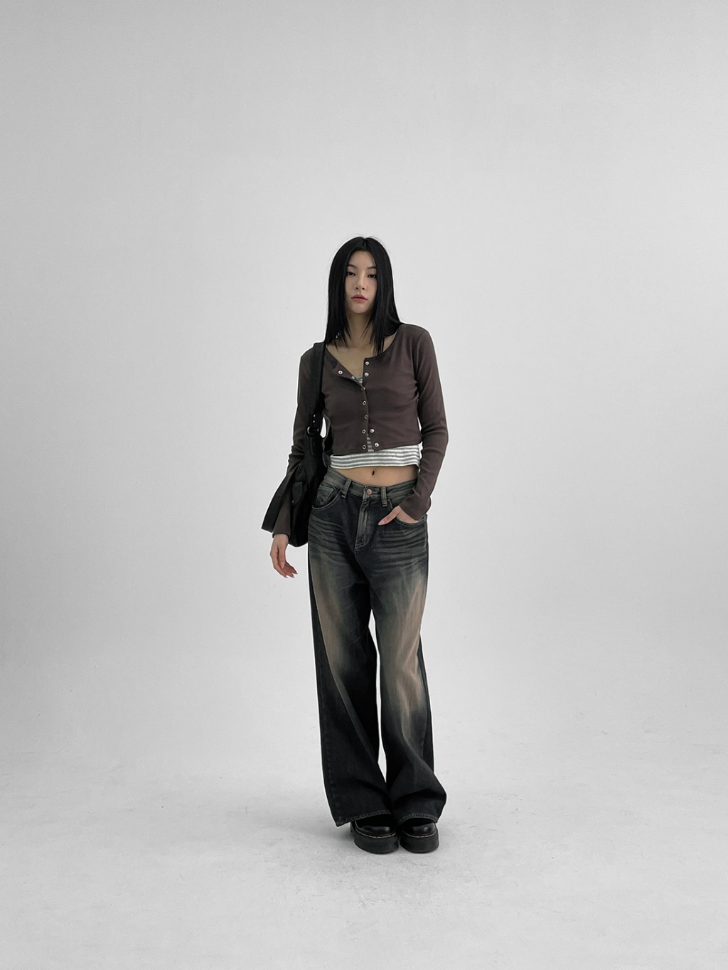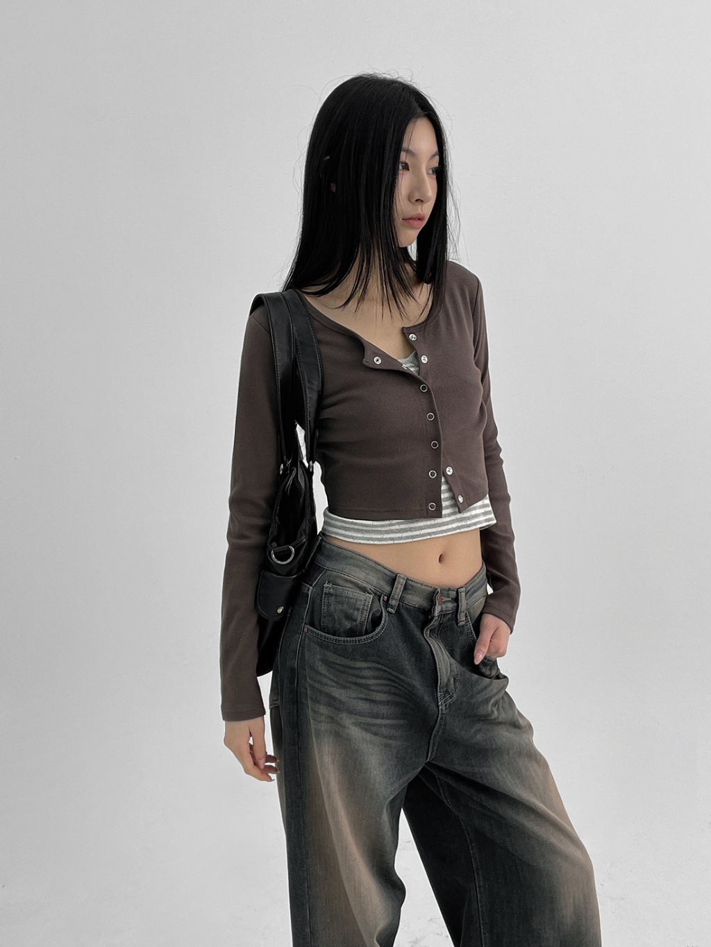 正韓製圓領排釦外套 cardigan 6色 ( black-up 自製設計款 ) 長袖 短版 長袖 上衣 罩衫