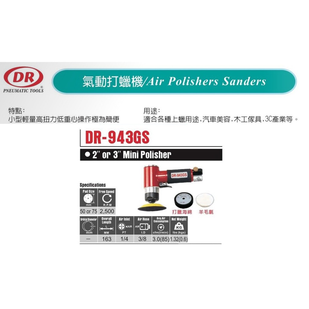 氣動打蠟機 氣動小型研磨機 DR-943GS 價格請來電或留言洽詢