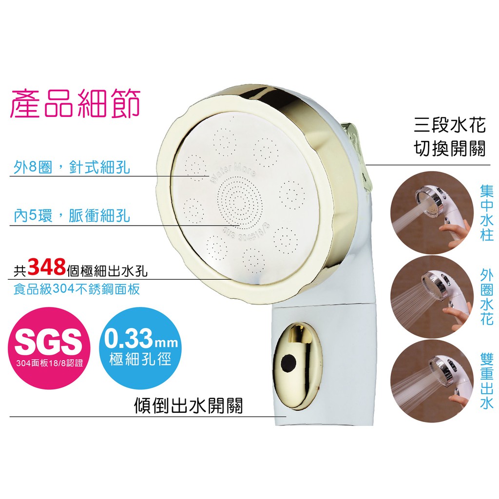 水摩爾三段增壓掉落自動止水安全蓮蓬頭 WM-588(1入) 省水標章認證 加壓SPA節水蓮蓬頭 滑落止水花灑 預防浴室意