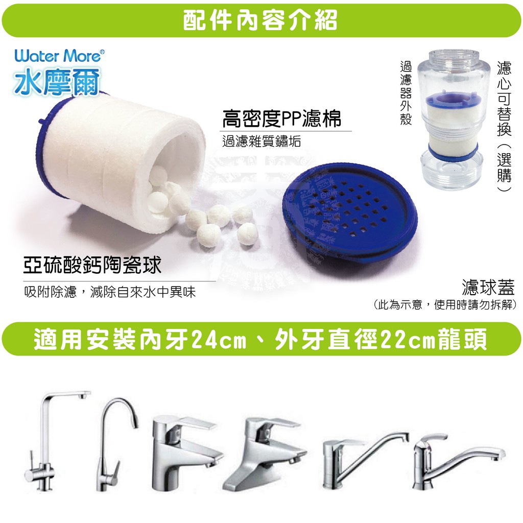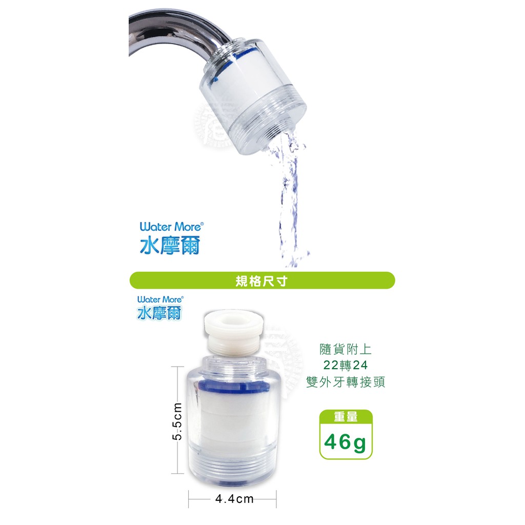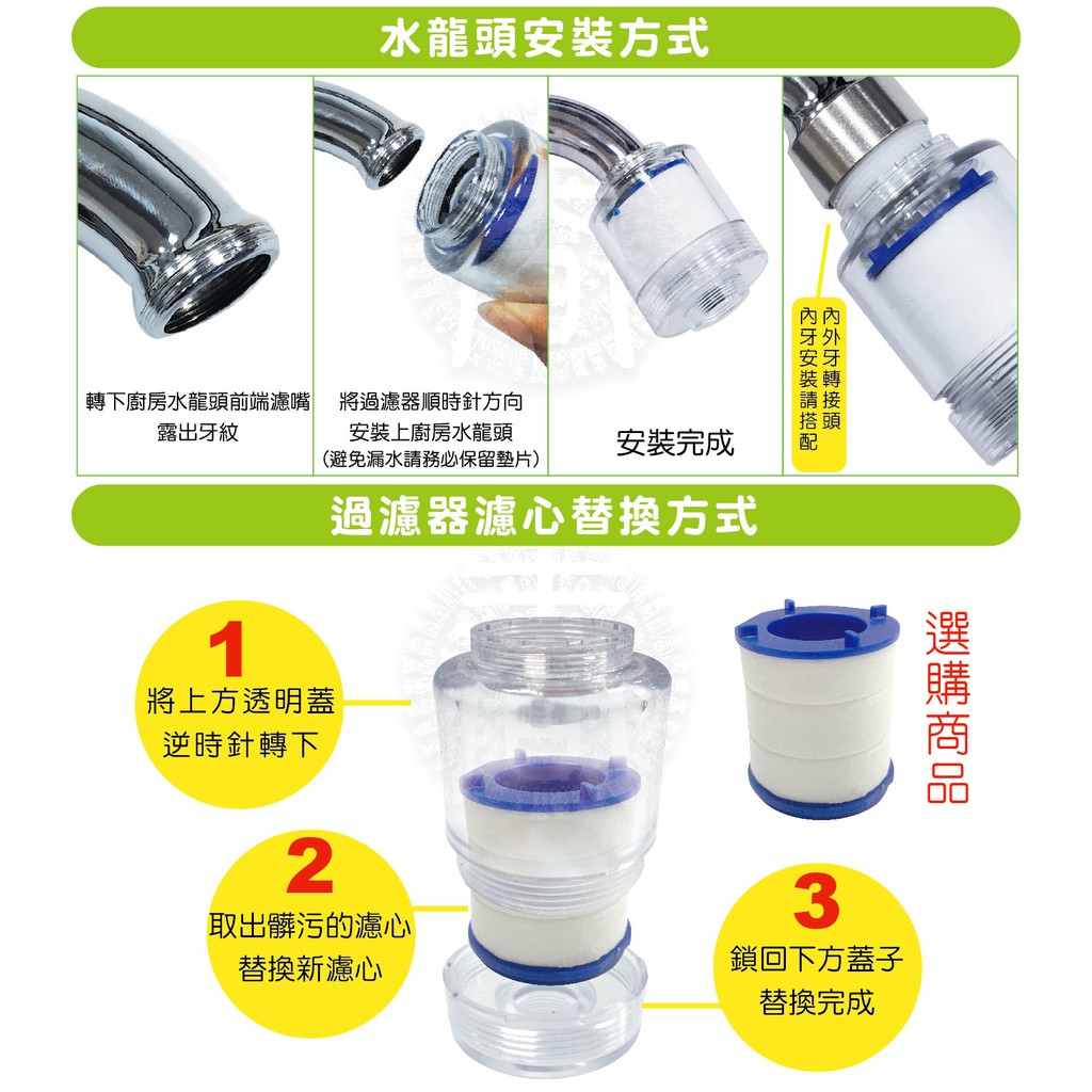 水摩爾 廚房 除氯 過濾器 2入(附內外牙轉接頭)+替換濾芯2個-水龍頭除氯淨水器 濾棉濾心過濾雜質鐵鏽汙垢