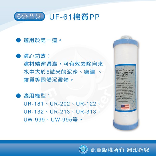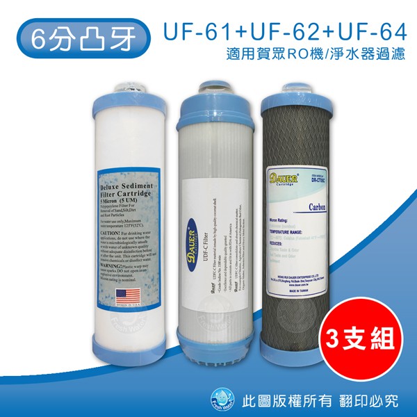 水蘋果【快速到貨~刷卡含稅】6分凸牙 UF-61、62、64濾心組(3支組)[J-6002]