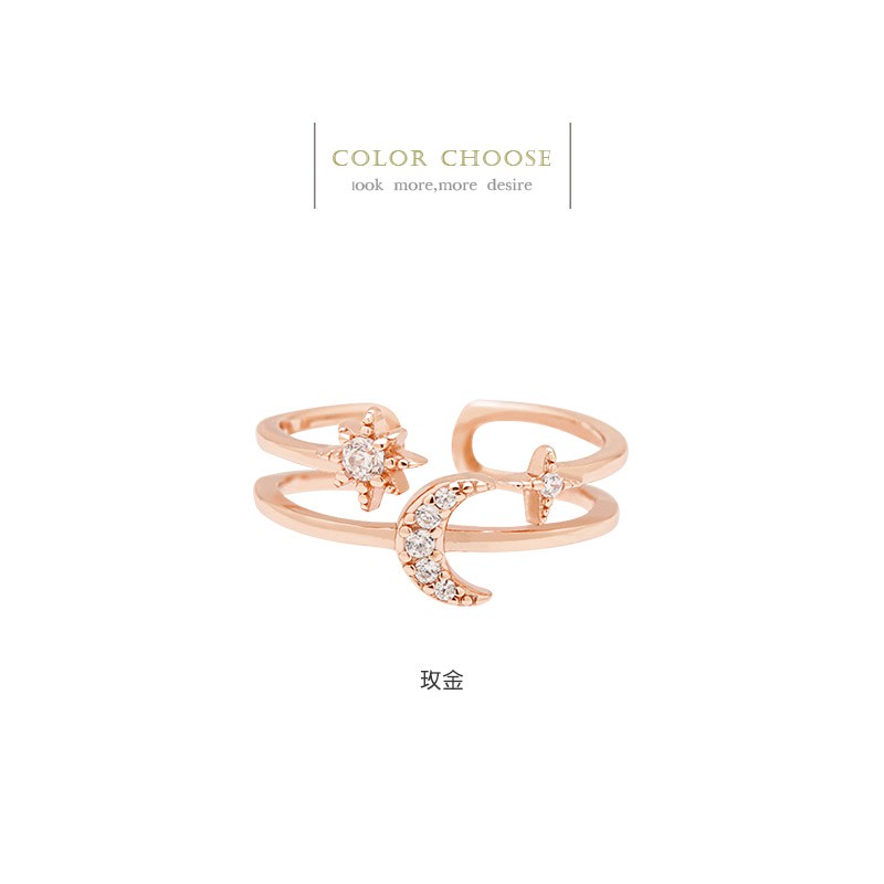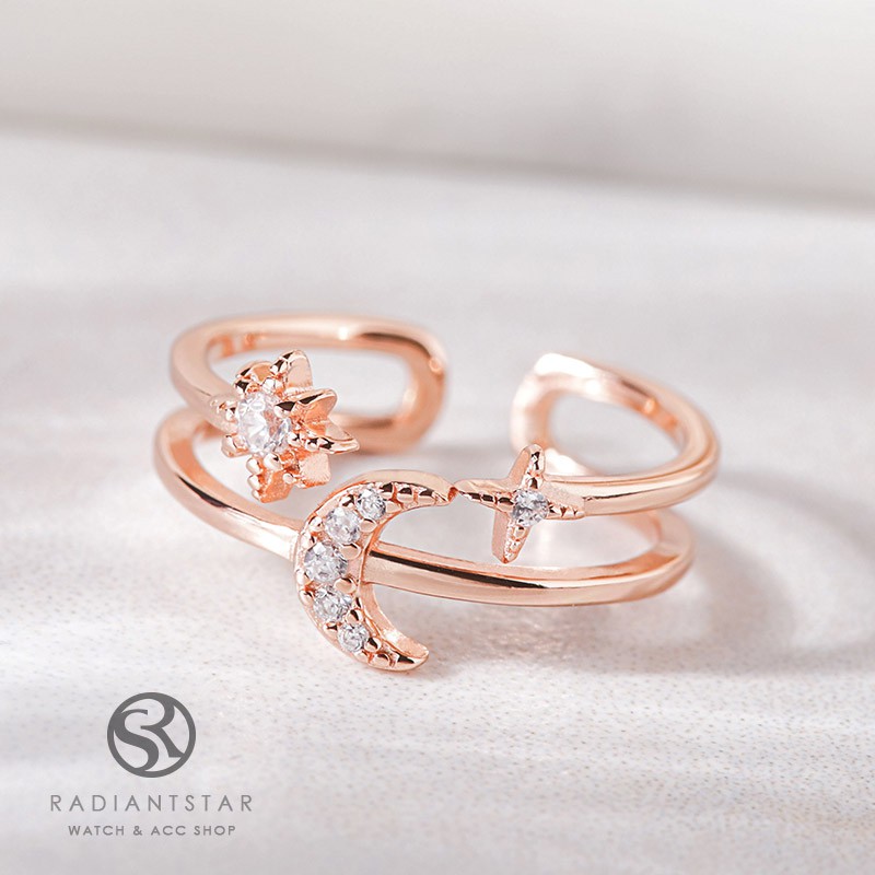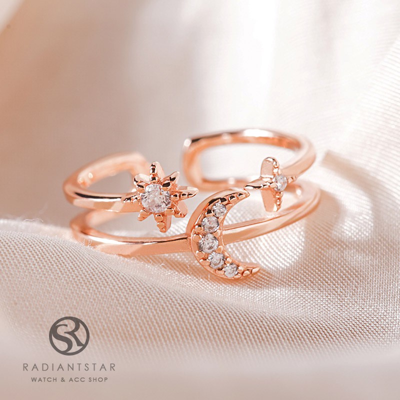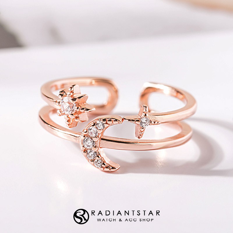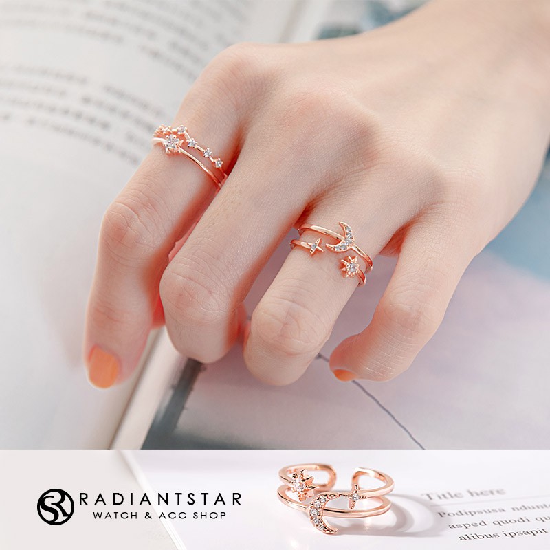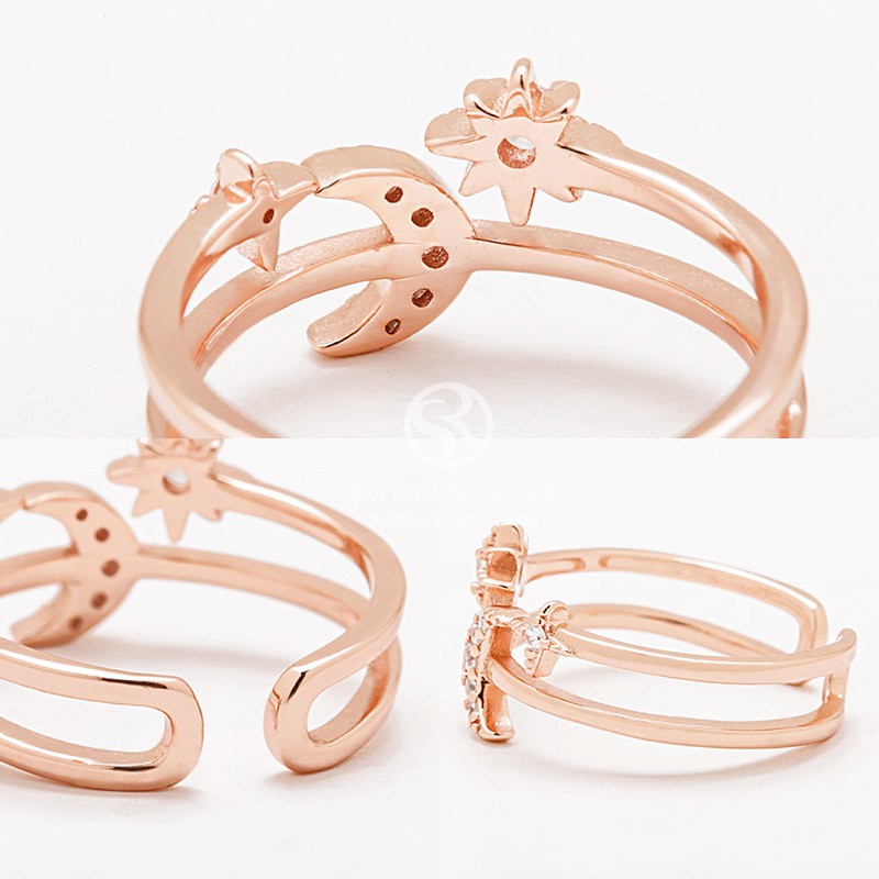 水鑽星星月亮925純銀鏤空戒指【SL736】璀璨之星