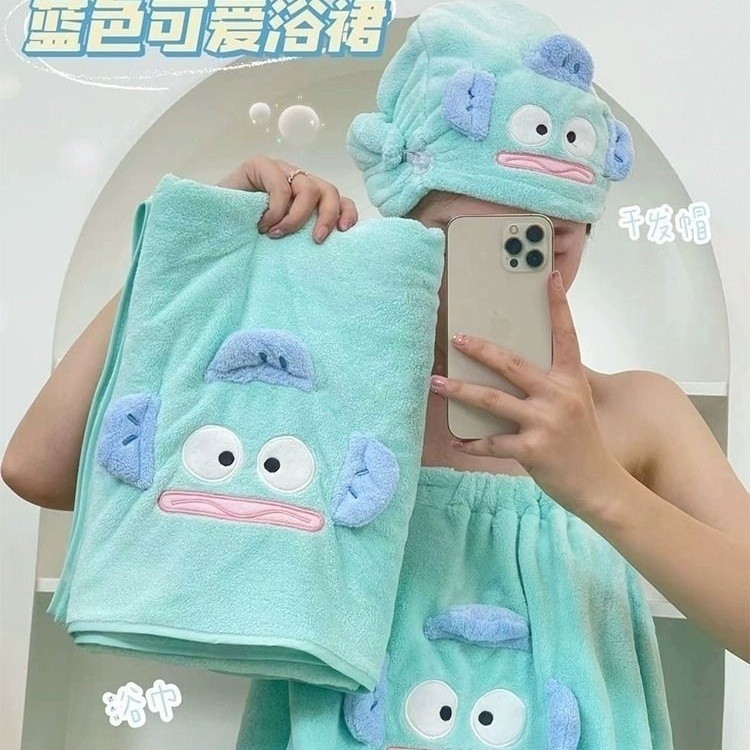 池之家shop🌝1004--小醜魚ins風可愛吸水不掉毛浴裙可穿可裹珊瑚絨浴巾幹髮帽三件套店主推薦款