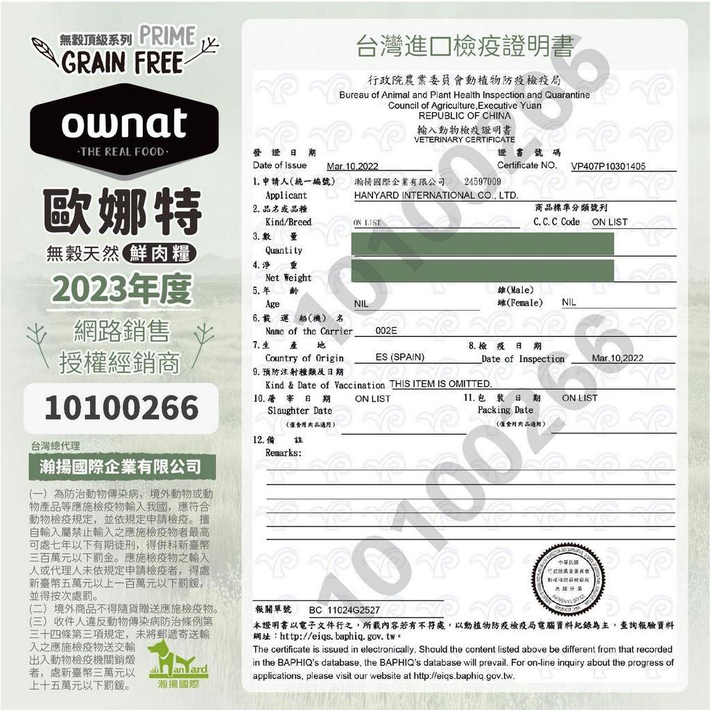 沛茲寵物【歐娜特 Ownat 貓用全齡無穀飼料 1kg 3kg 8kg】全齡貓 無穀 西班牙 貓飼料 貓 飼料
