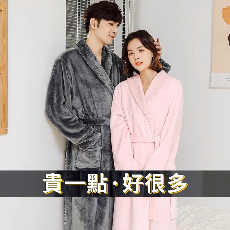 法蘭絨睡袍🔥24H出貨🔥台灣公司🔥140公分加長 男女情侶 純色舒適親膚 冬季加厚 情侣款 法蘭絨浴袍 珊瑚絨睡袍