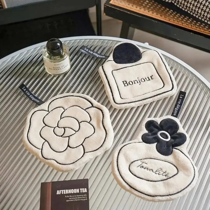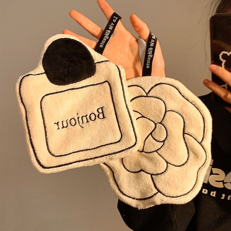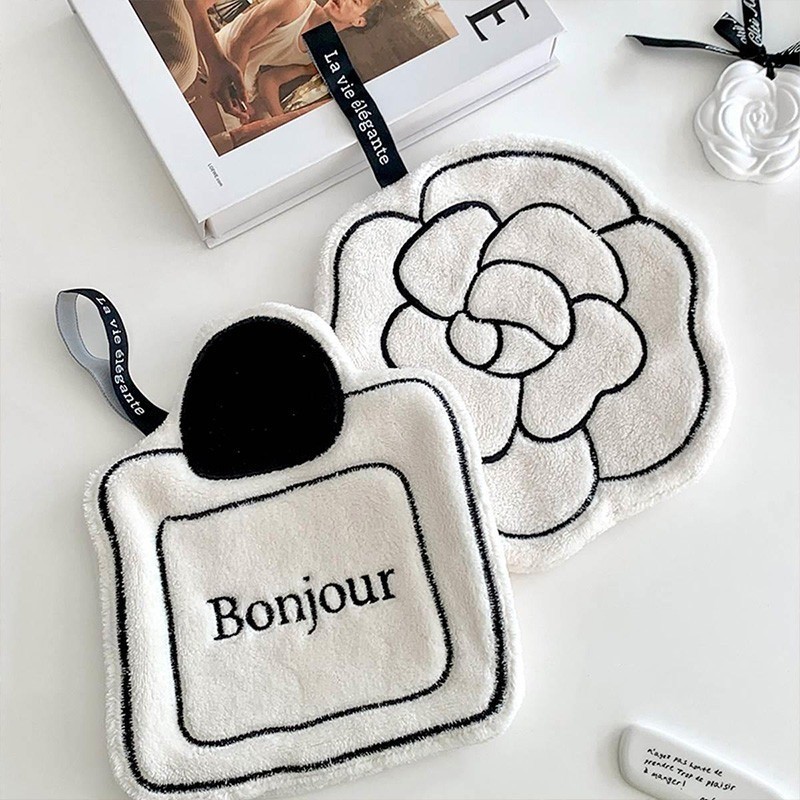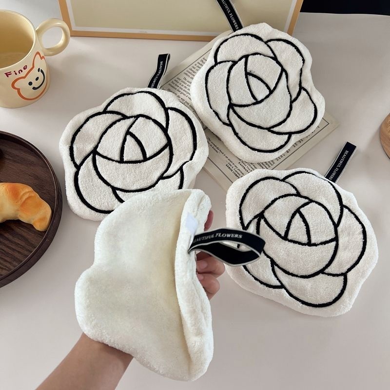 浪漫法式山茶花毛巾家居裝飾超吸水掛珊瑚絨手巾浴室廚房用品