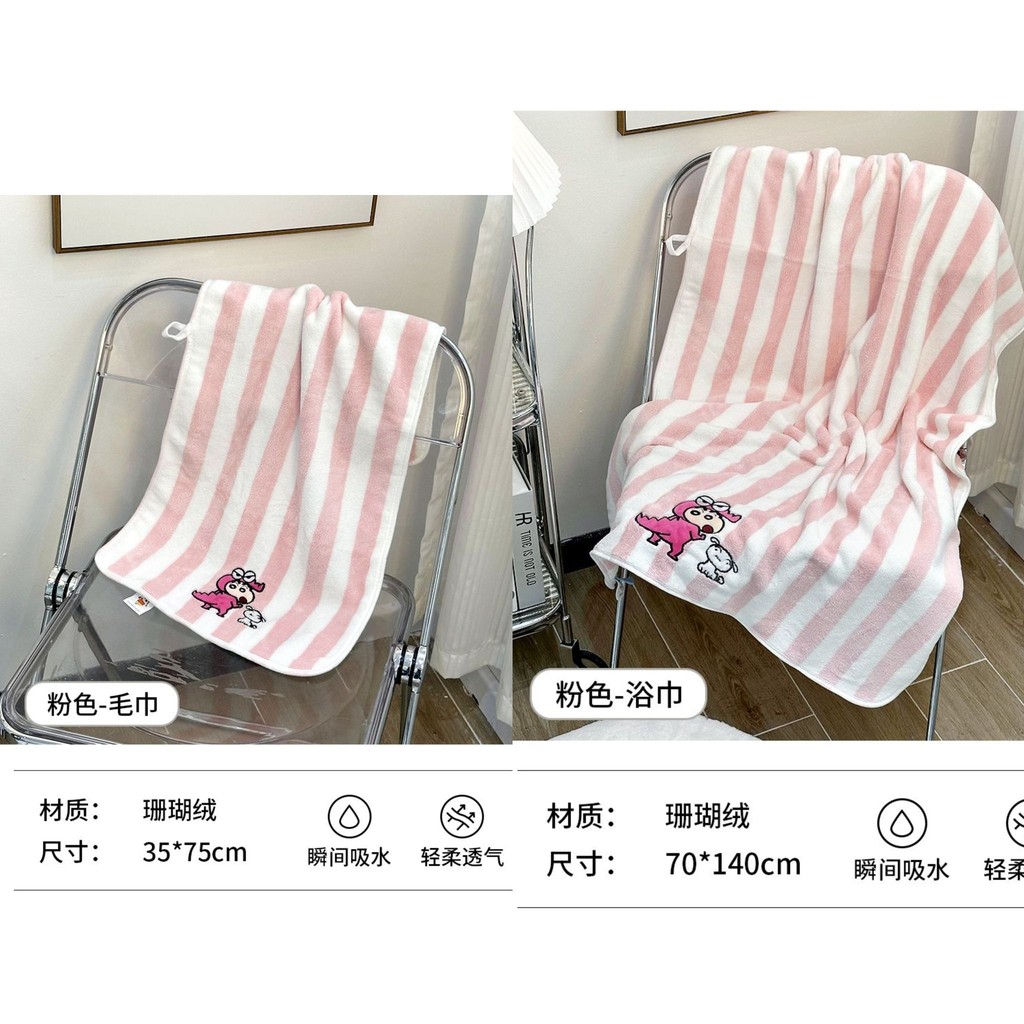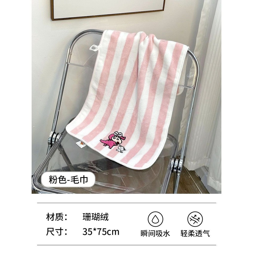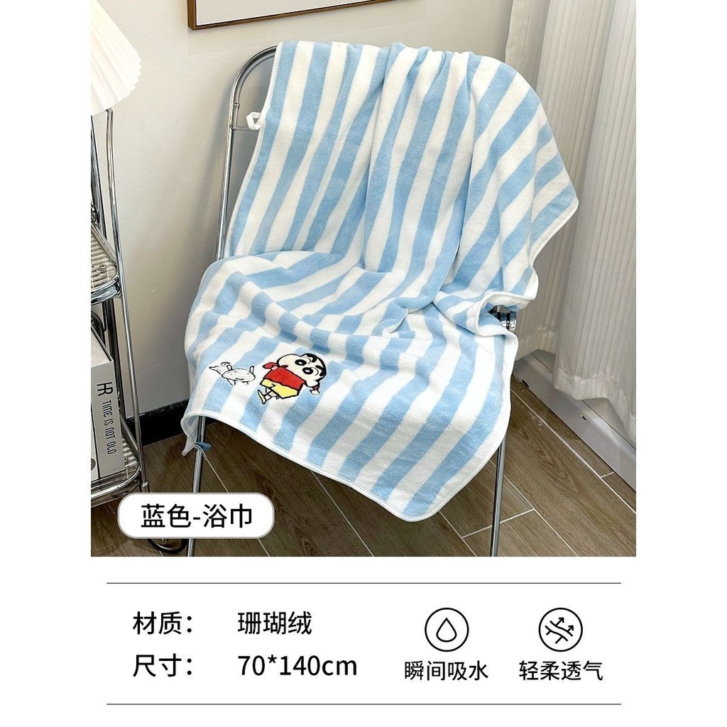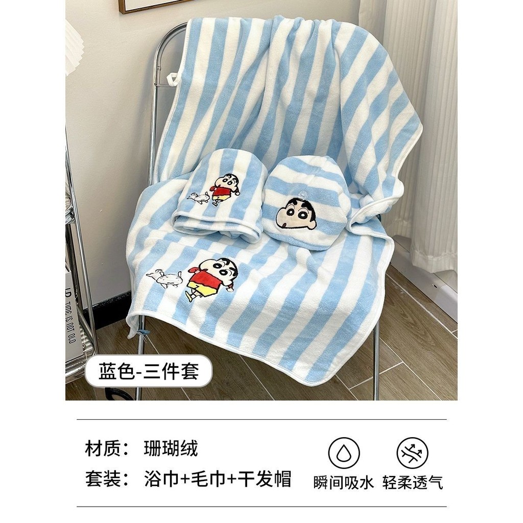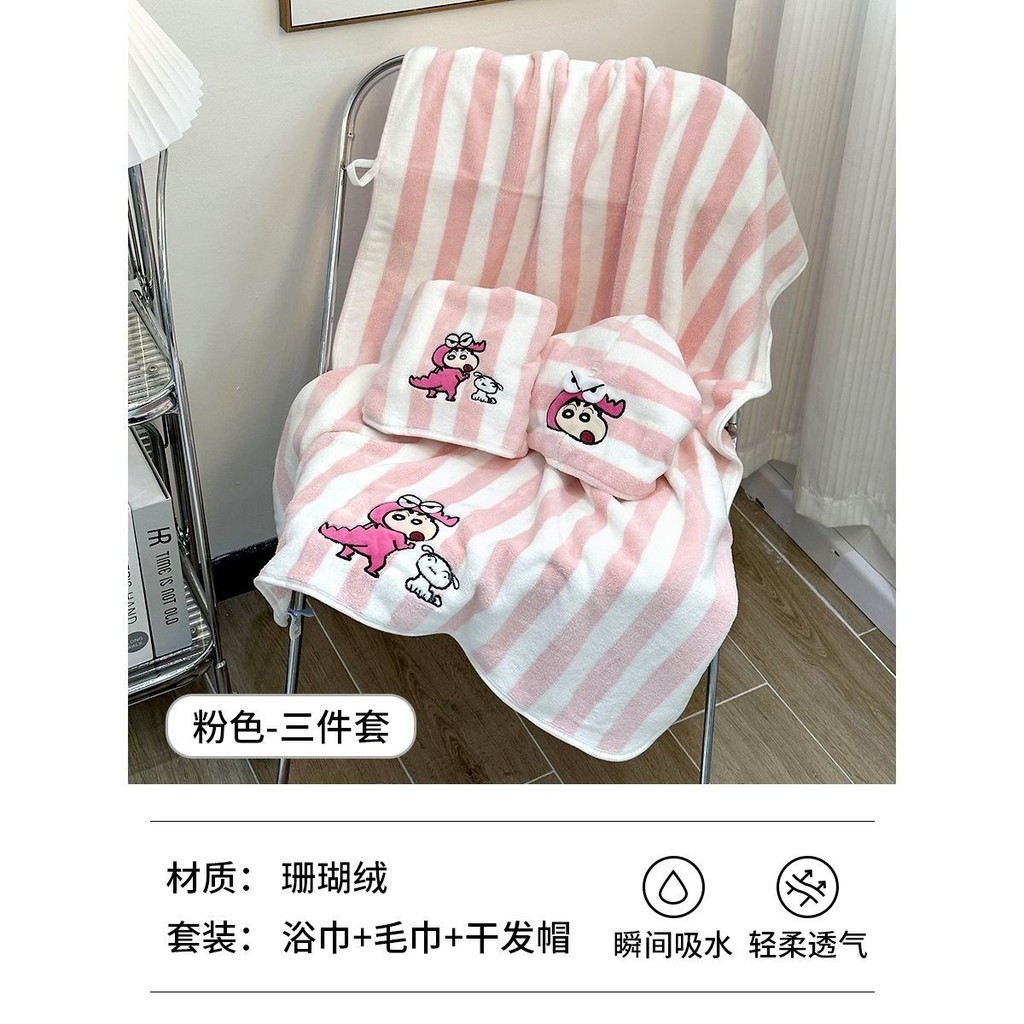 浴巾三件套🌸 吸水不掉毛 蠟筆小新浴巾女秋冬新款速干吸水強珊瑚絨兒童可愛毛巾三件套宿舍 可愛卡通 珊瑚絨