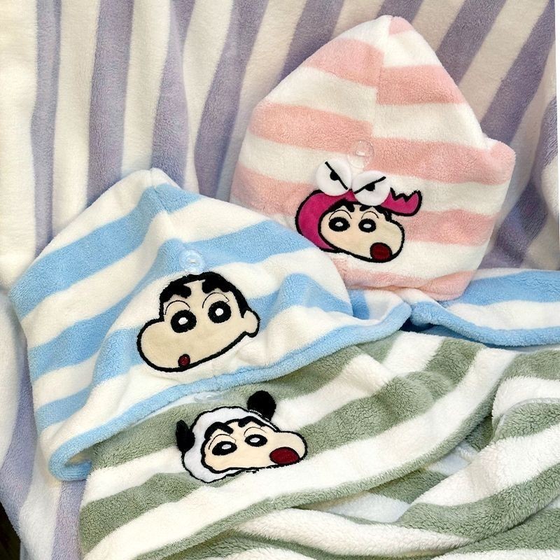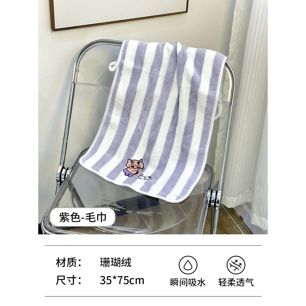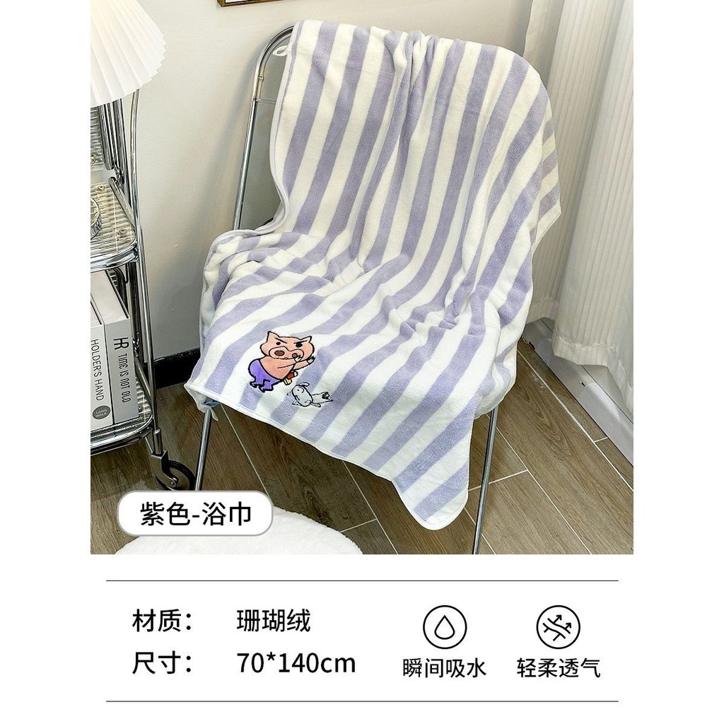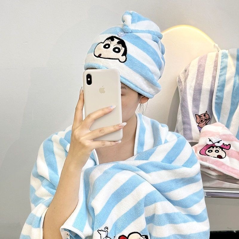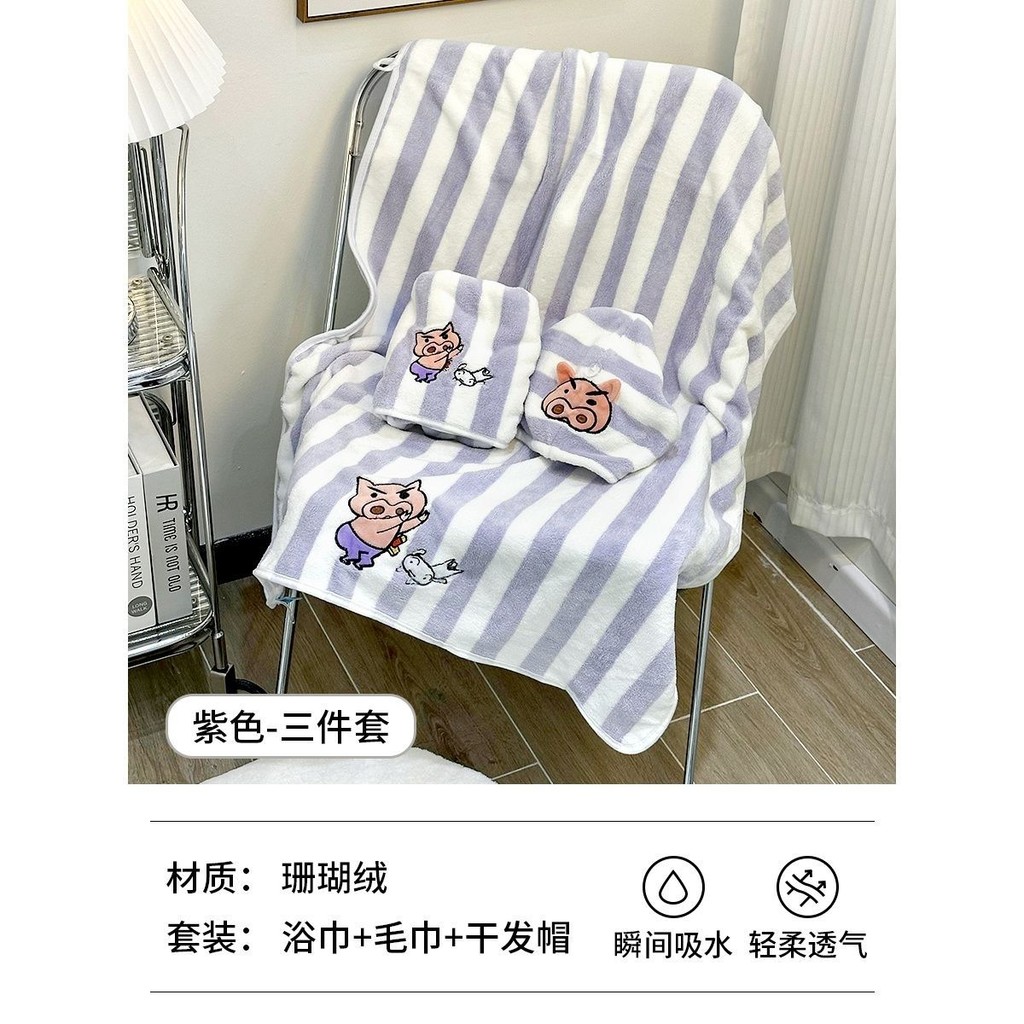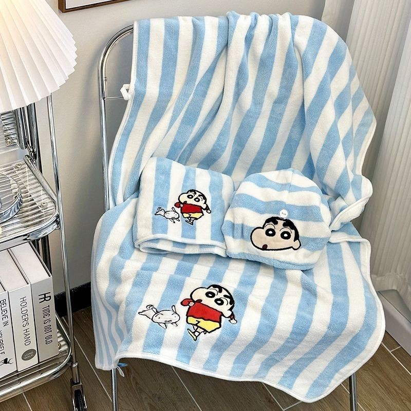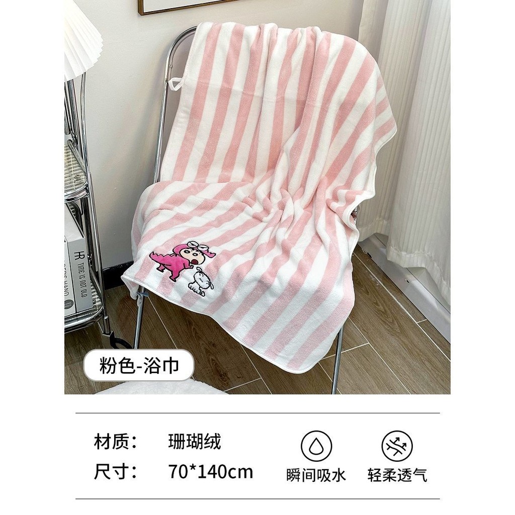 浴巾三件套🌸 吸水不掉毛 蠟筆小新浴巾女秋冬新款速干吸水強珊瑚絨兒童可愛毛巾三件套宿舍 可愛卡通 珊瑚絨