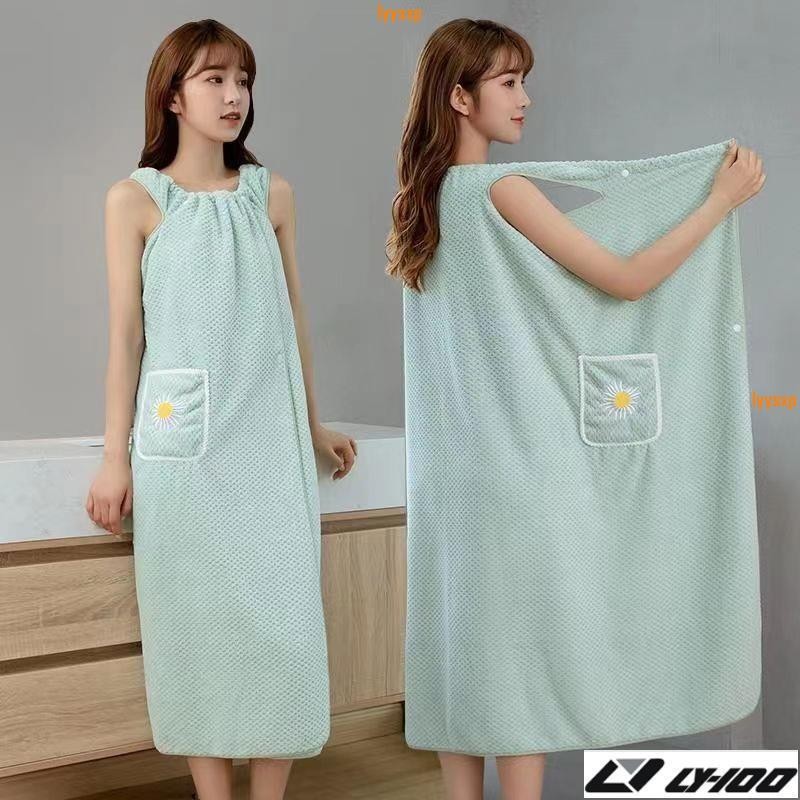 浴巾 浴袍 浴裙 全棉材質 可穿可裹 吸水浴裙 長款 2024新款 吊帶家用lyys03