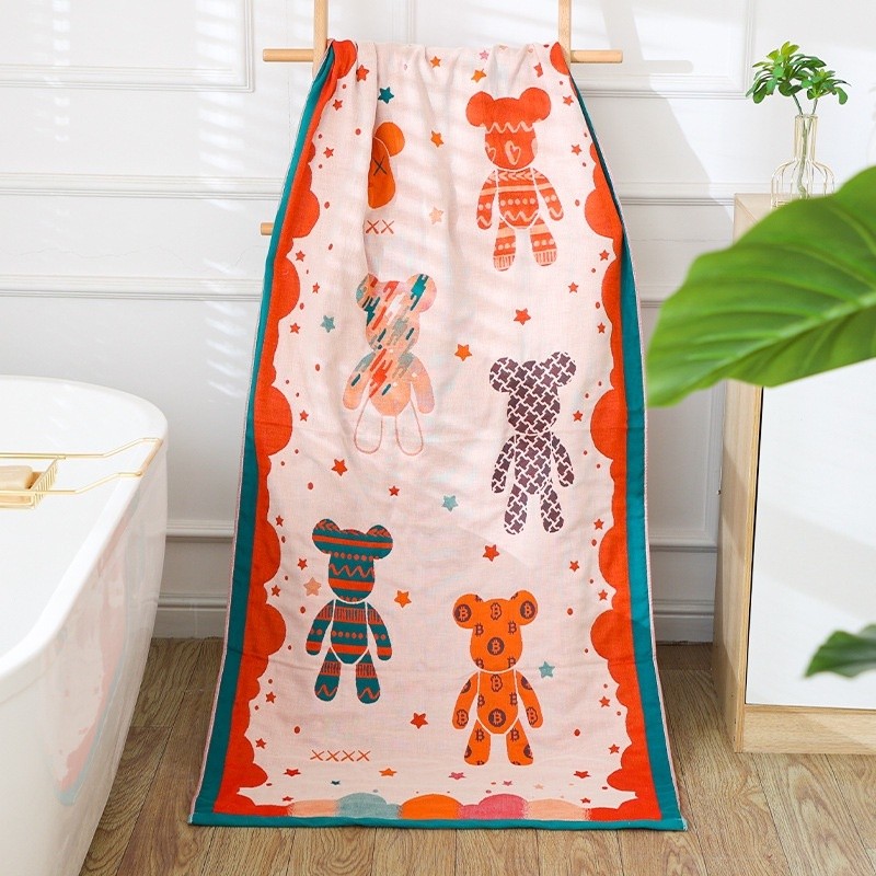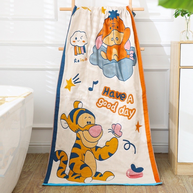浴巾 紗布款純棉浴巾 四層紗布吸水浴巾 可裹浴巾女情侶浴巾 卡通成人浴巾 加大加厚不易掉毛浴巾