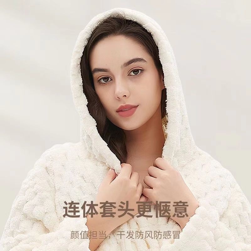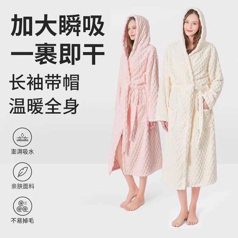 浴袍女士比純棉吸水速幹珊瑚絨可穿浴巾男情侶洗澡浴袍男長款