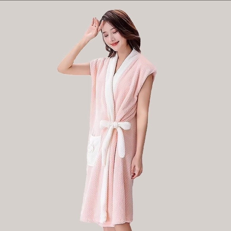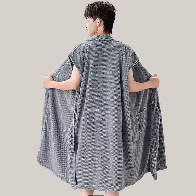 浴袍 浴巾 男士菠蘿格浴袍浴裙可穿女士浴巾珊瑚絨加厚柔軟吸水傢居連體浴袍