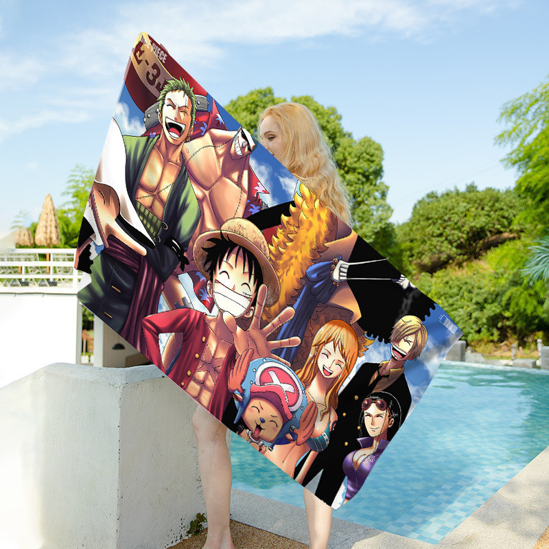 海賊王 D. 路飛70x140cm沙灘巾單面印花游泳柔軟吸水毛圈布三麗鷗家庭沙灘巾家居生活衛浴用品