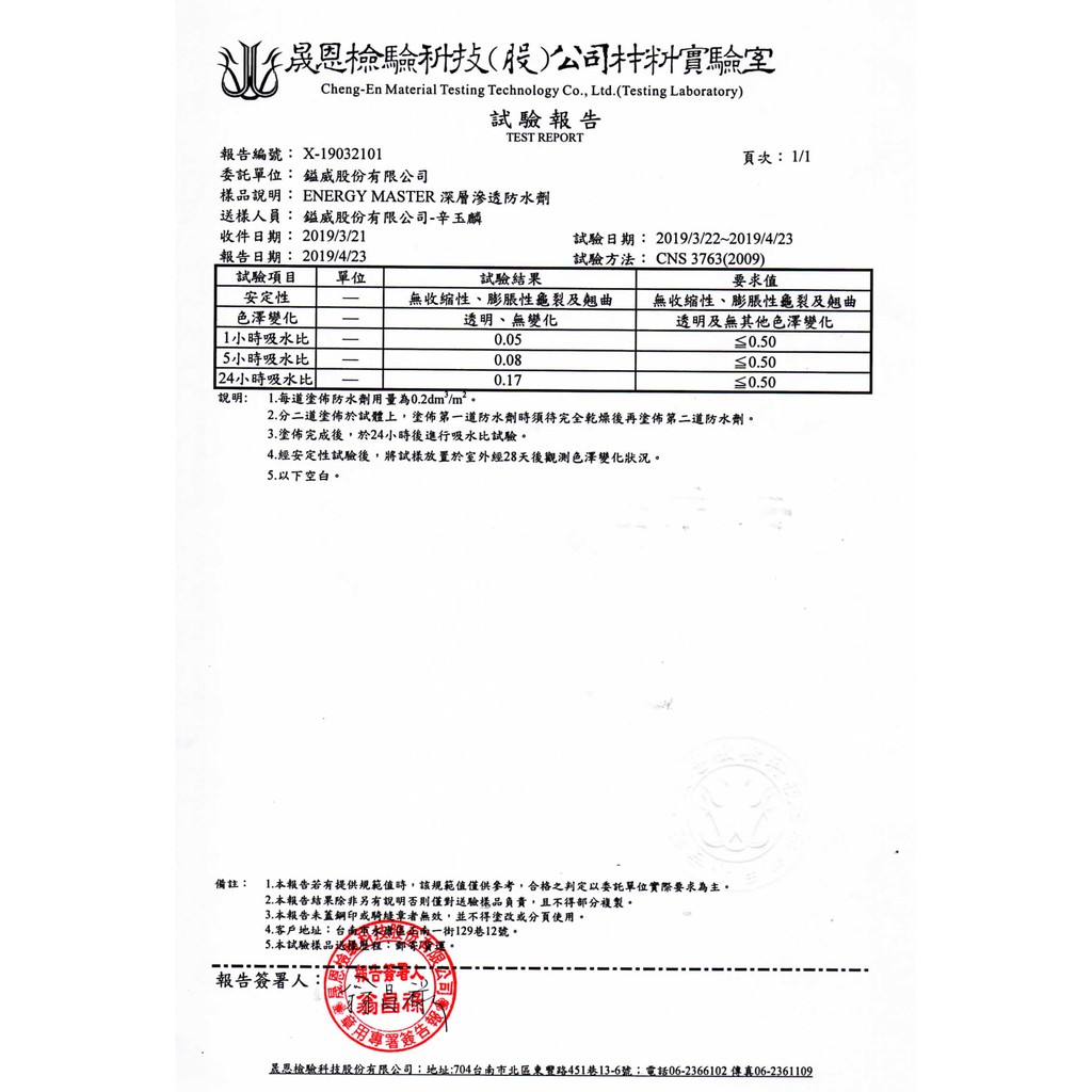 深層滲透止滑防水劑 滲透結晶型(約 3~5cm)無膜 現貨速發 通過國家防水標準CNS3763(2009)