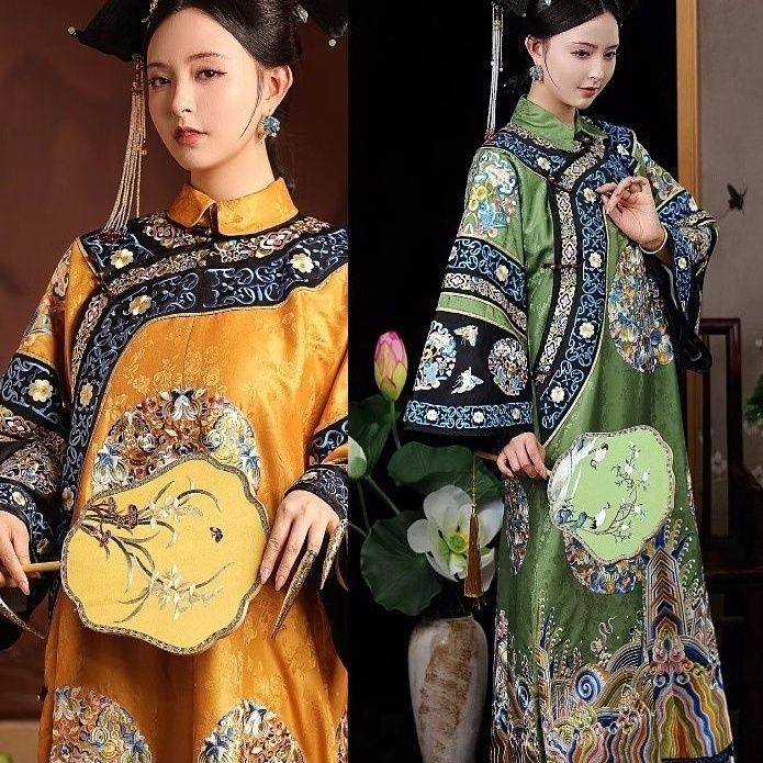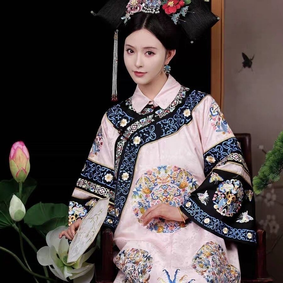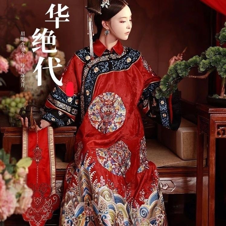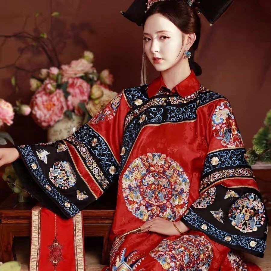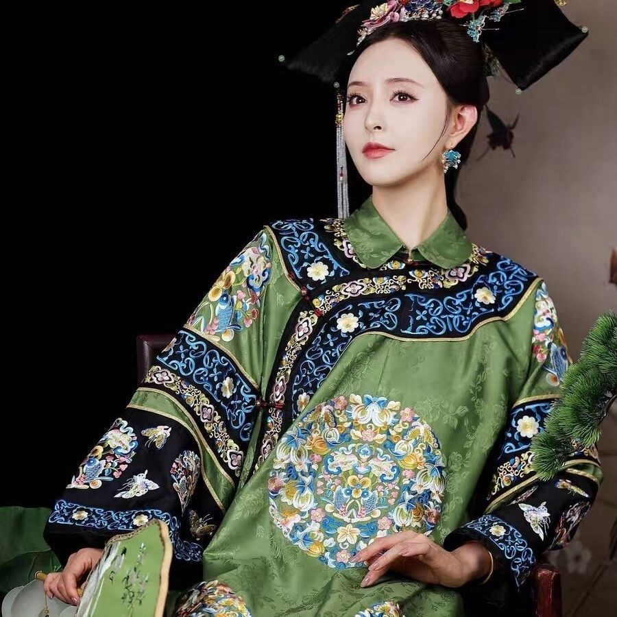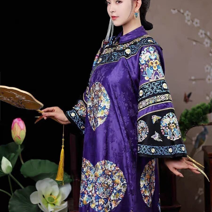 清朝皇太后服裝 皇后吉服 清代女宮廷故宮寫真印花中國古著氅衣旗裝