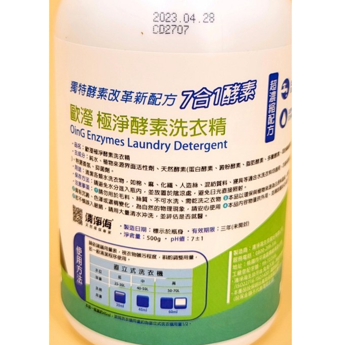 清淨海 歐瀅 極淨酵素洗衣精 (500g/瓶)