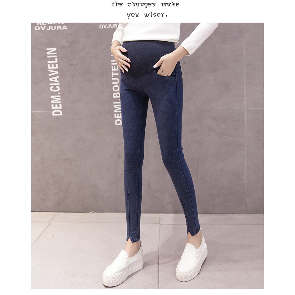 零碼特價 仿舊腳口V彈力托腹孕婦長褲 孕婦褲 孕婦裝 BabyShare時尚孕婦裝【OCL017G4L】