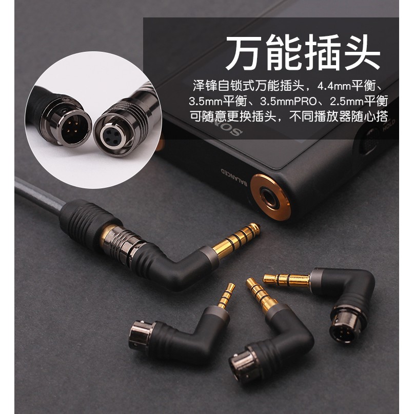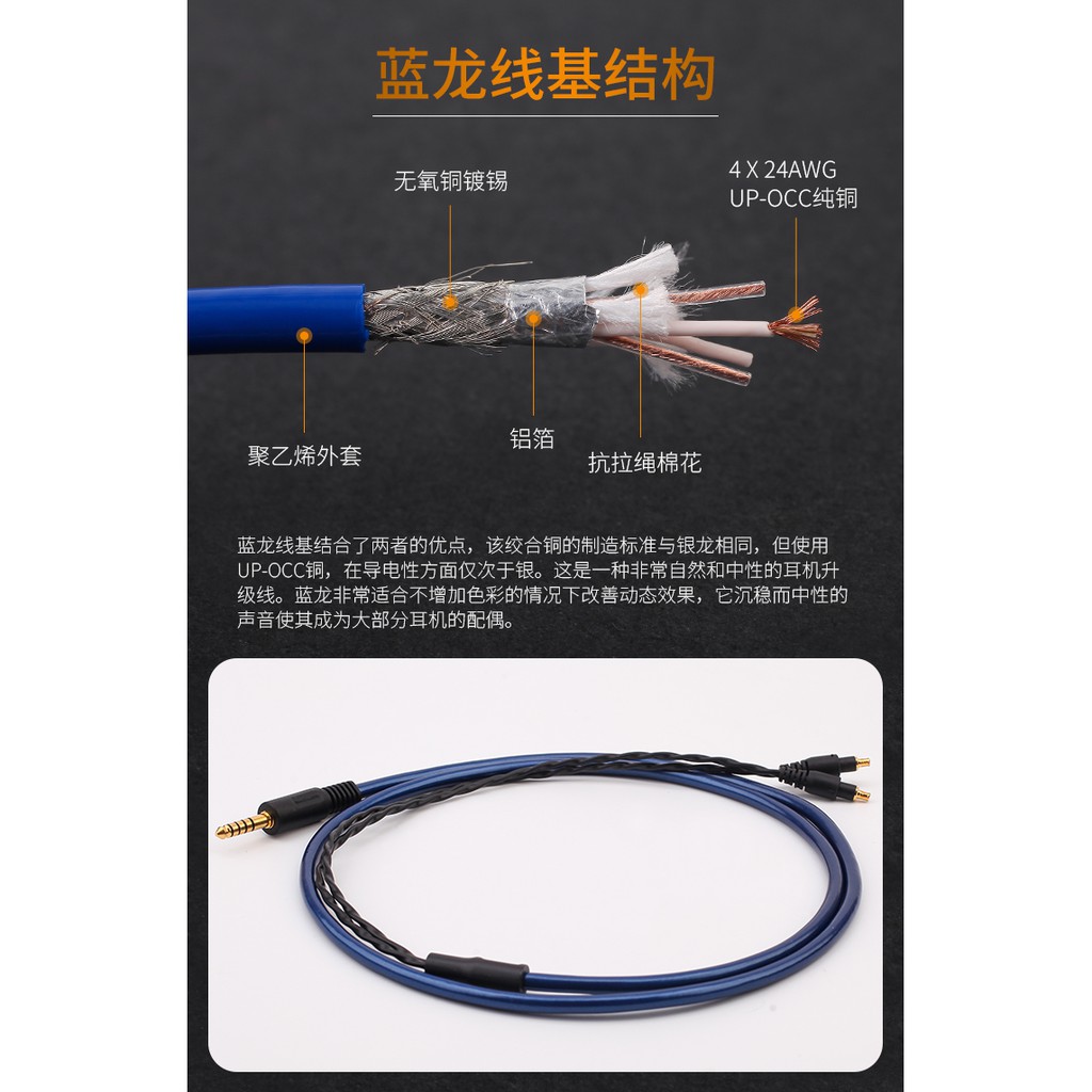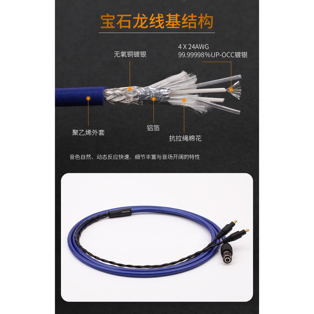 澤鋒 藍龍 寶石龍 可換插頭 升級線 7N單晶銅 鍍銀 適用 Moon Audio 雙3.5 澤豐 客製 耳機線