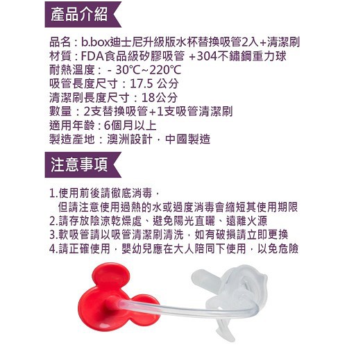 澳洲b.box 迪士尼升級版水杯替換吸管2入+清潔刷(米奇)