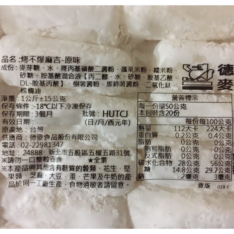 烤不爆麻吉 1公斤 原味.黑糖口味(冷凍低溫配送)