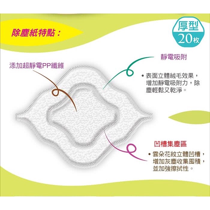 無塵氏 雲朵花紋靜電除塵紙 20張 包|史泰博
