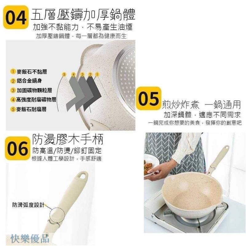 熱賣🔥不沾小炒鍋 麥飯石炒鍋 炒鍋 炒菜鍋 煎鍋 平底鍋 20cm 火山岩不沾炒鍋 導熱快 輕油煙 易清洗 不沾炒鍋dd
