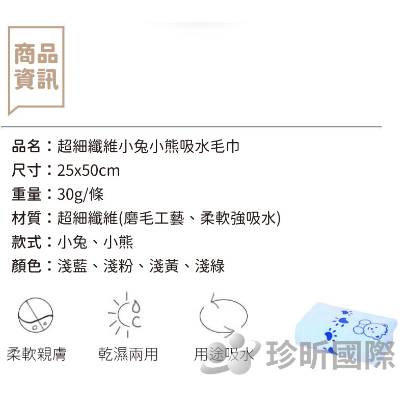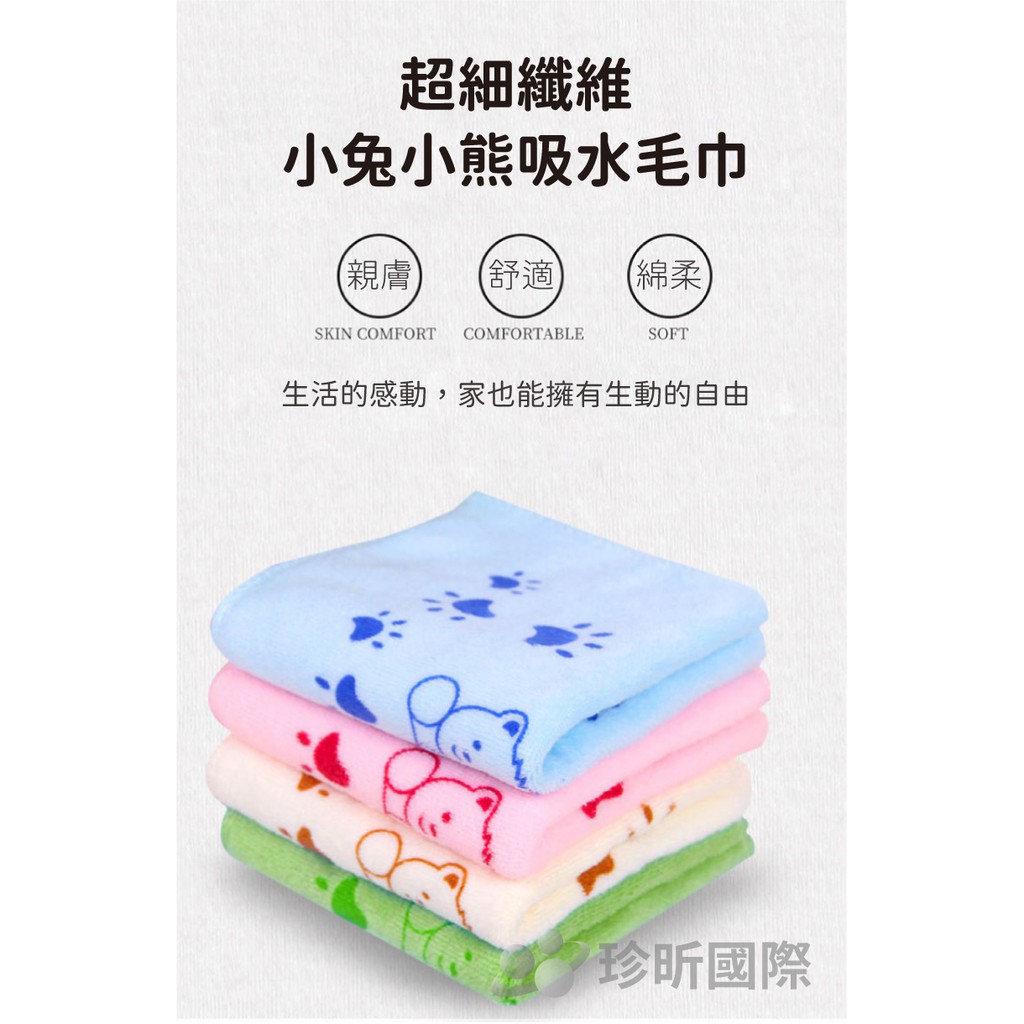 熱銷好評【珍昕寶貝】超細纖維小兔小熊吸水小毛巾 顏色隨機 長約30 寬約25cm 毛巾 吸水毛巾 兒童毛巾