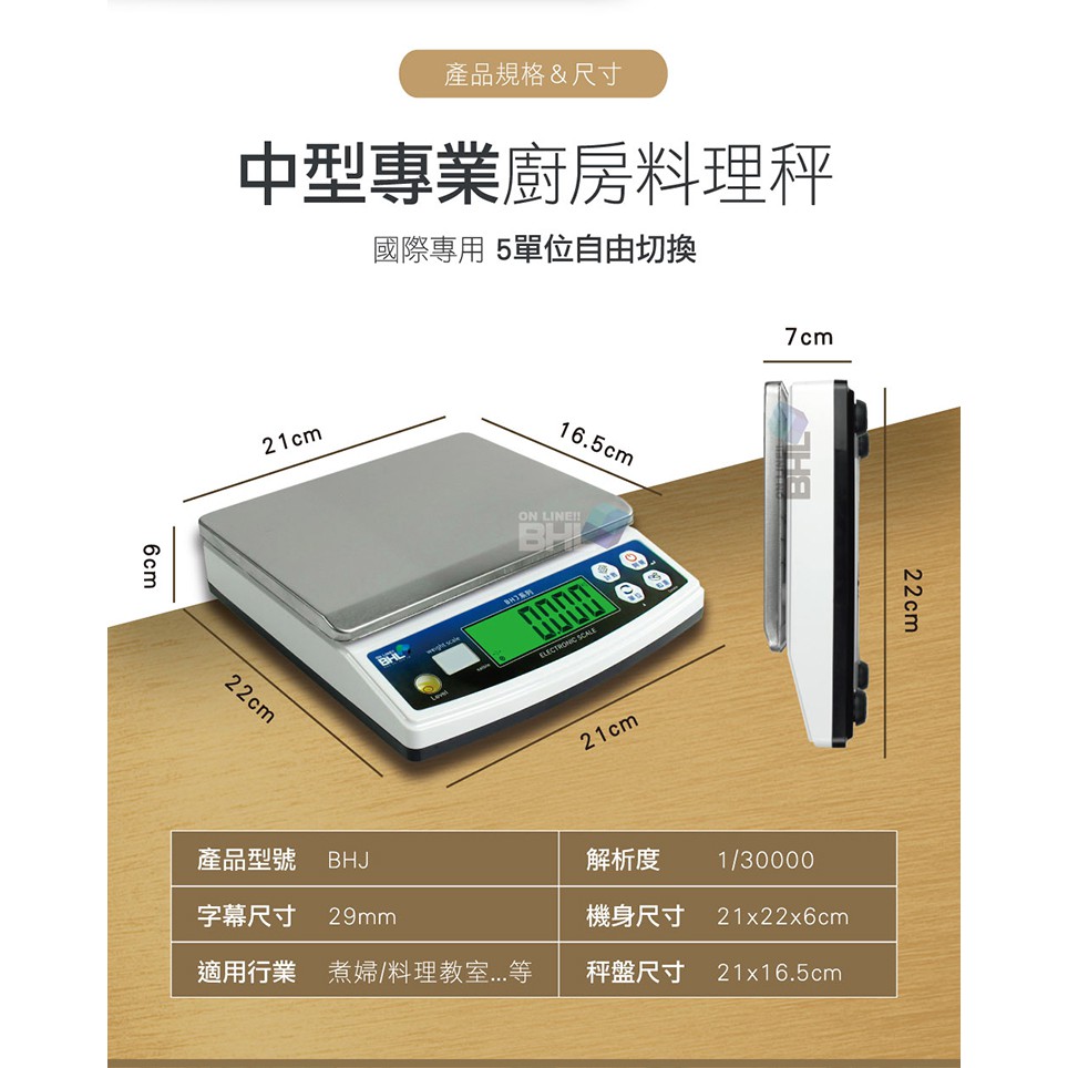 熱銷機型!!【BHL秉衡量】BHJ高精度中型專業廚房料理秤 3kg 6kg 10kg 15kg
