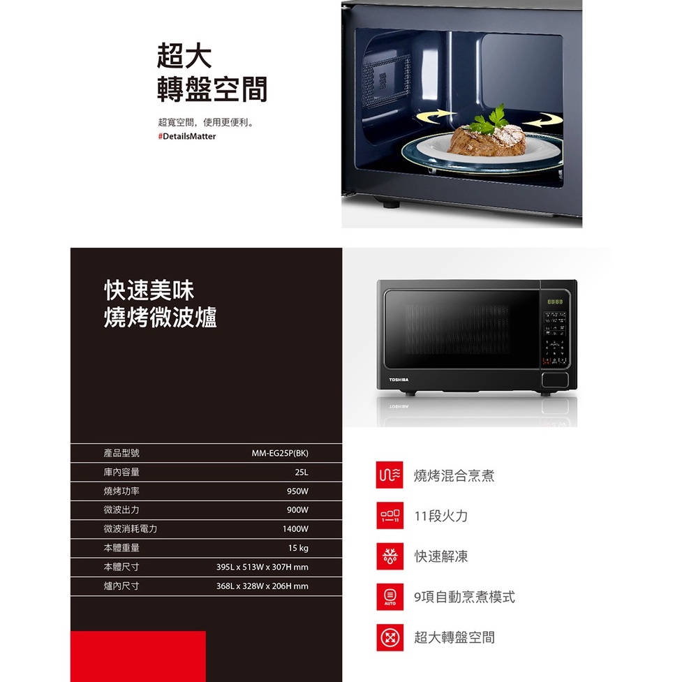 燒烤混合烹煮 ✕ 11段火力 ✕ 快速解凍 TOSHIBA 東芝 燒烤料理 微波爐 34L MM-EG34P(BK)