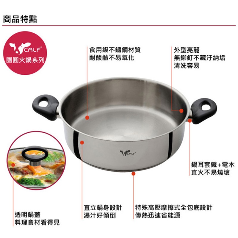 牛頭牌 新小牛團圓火鍋 30cm 6.4L 圍爐火鍋 湯鍋 麻辣鍋 不鏽鋼鍋 團圓飯 關東煮 薑母鴨 除夕火鍋 家庭火鍋