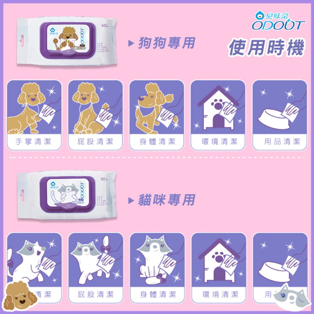 狗富貓厝|臭味滾ODOUT 除臭抗菌濕紙巾 貓犬用濕紙巾 除臭濕紙巾 濕紙巾 清潔抑菌 寵物用品 寵物濕紙巾 寵物除臭