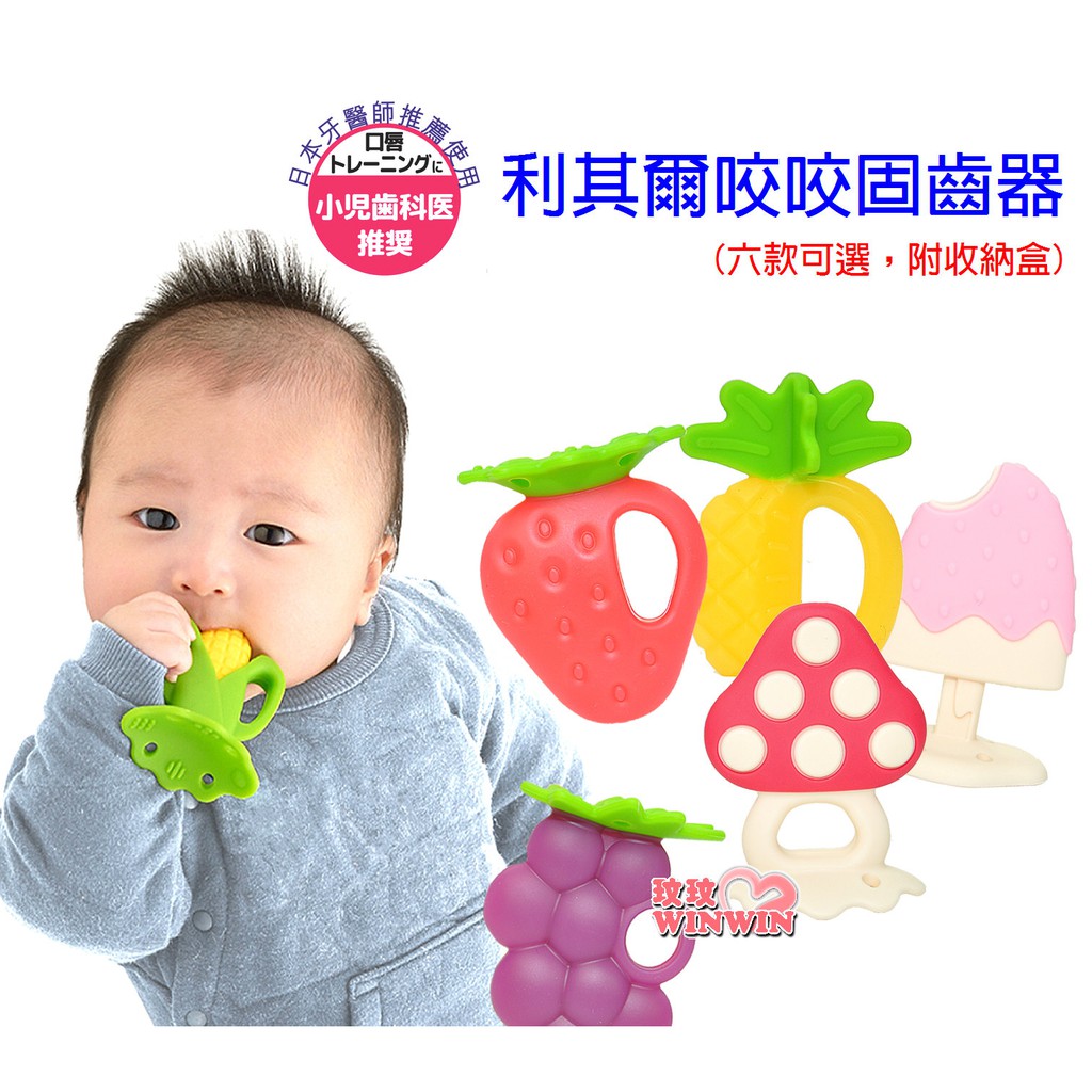 玟玟 日本 利其爾Richell 咬咬固齒器(附盒),適合長牙期間喜歡咬東西的寶寶,耐熱140度可微波煮沸消毒