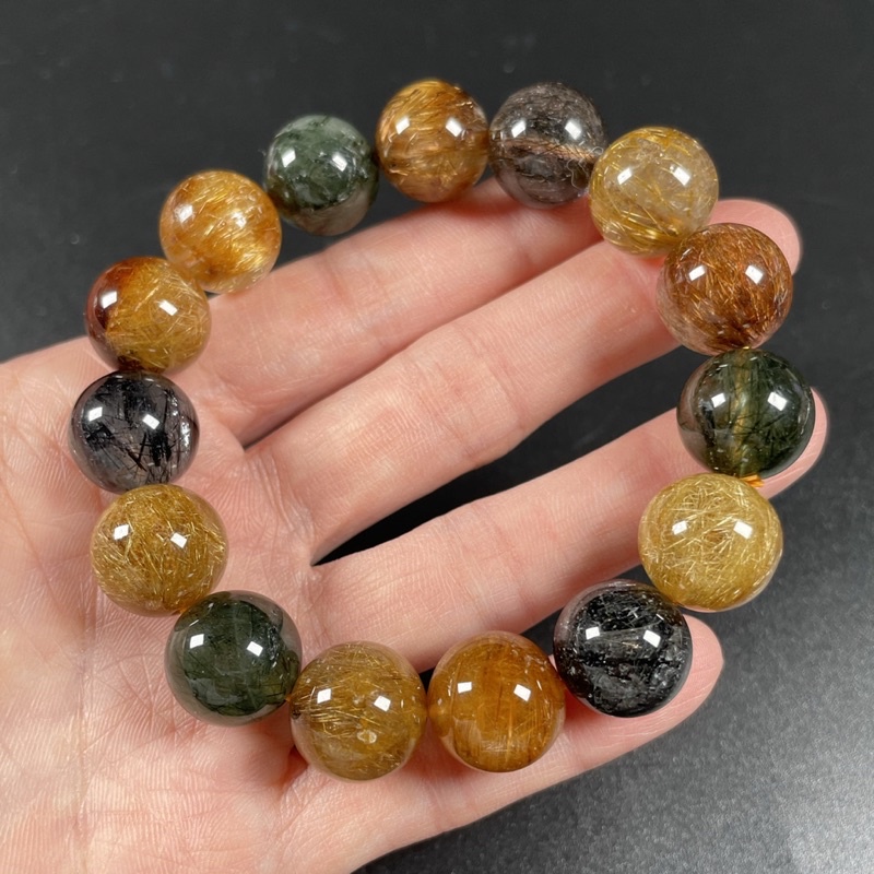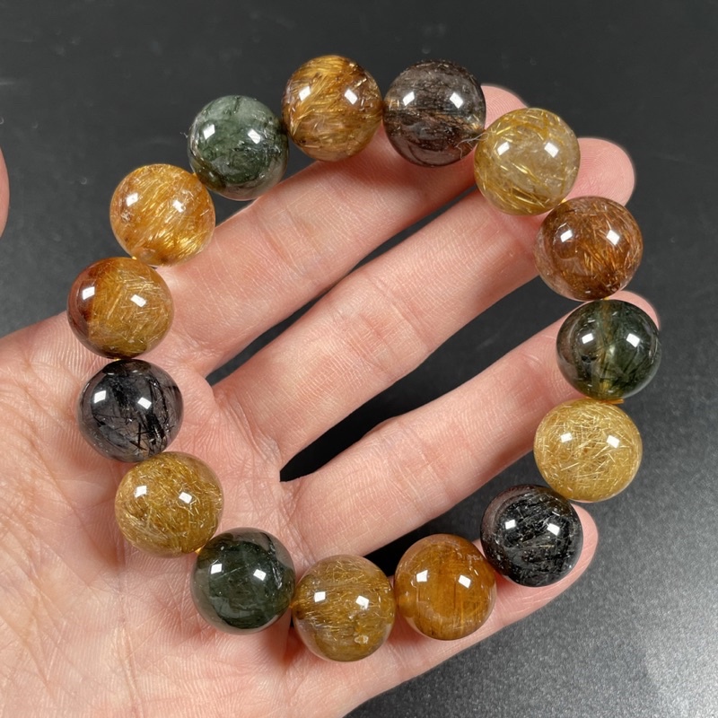 玩石頭♥️天然 彩鈦 彩色鈦晶14mm 彩鈦晶 內有鈦晶、銅鈦、黑髮、紅銅鈦、代表五行皆具備